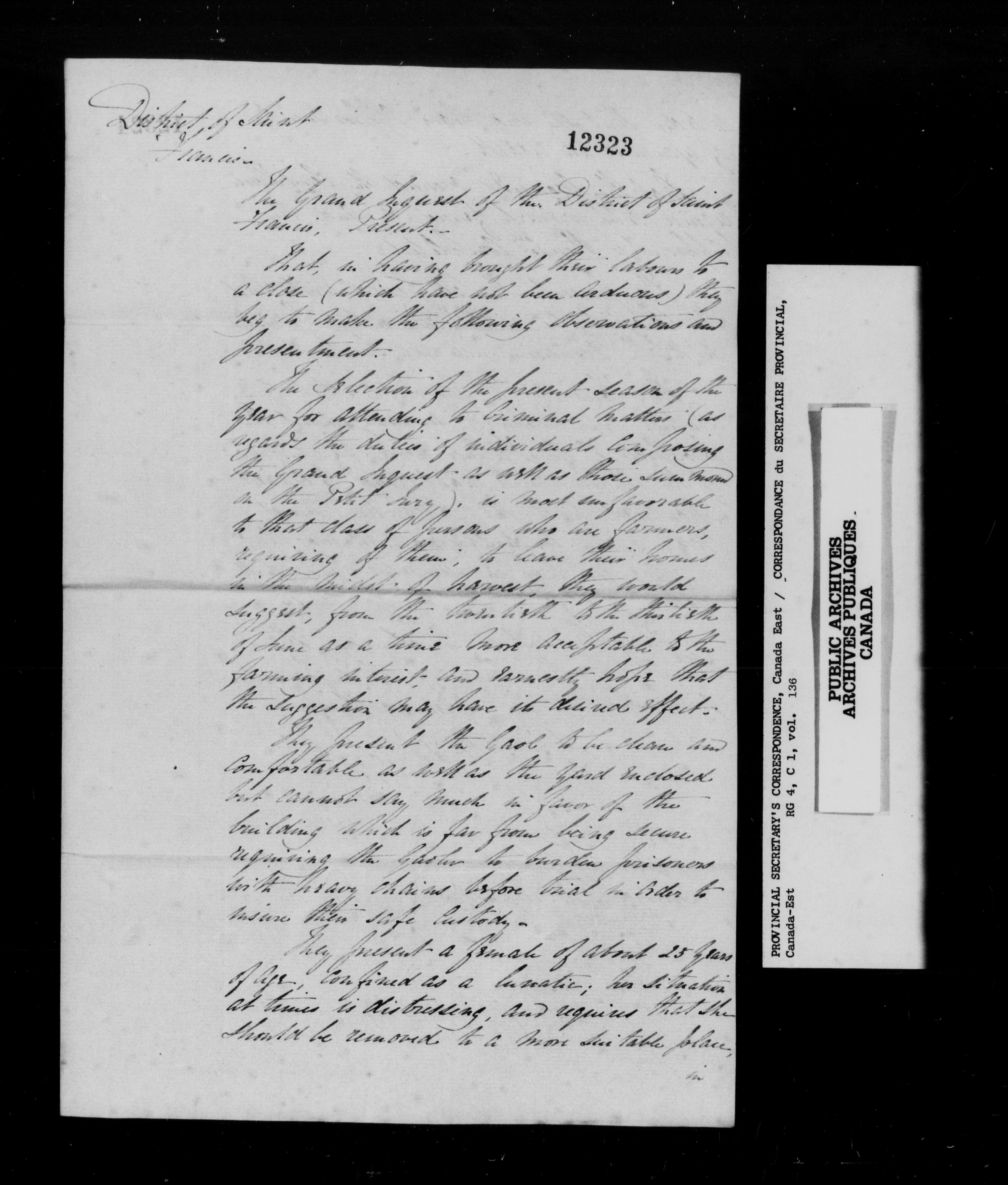 Provincial Secretary, Canada East : Numbered Correspondence Files, 1839-1867 - 13536
