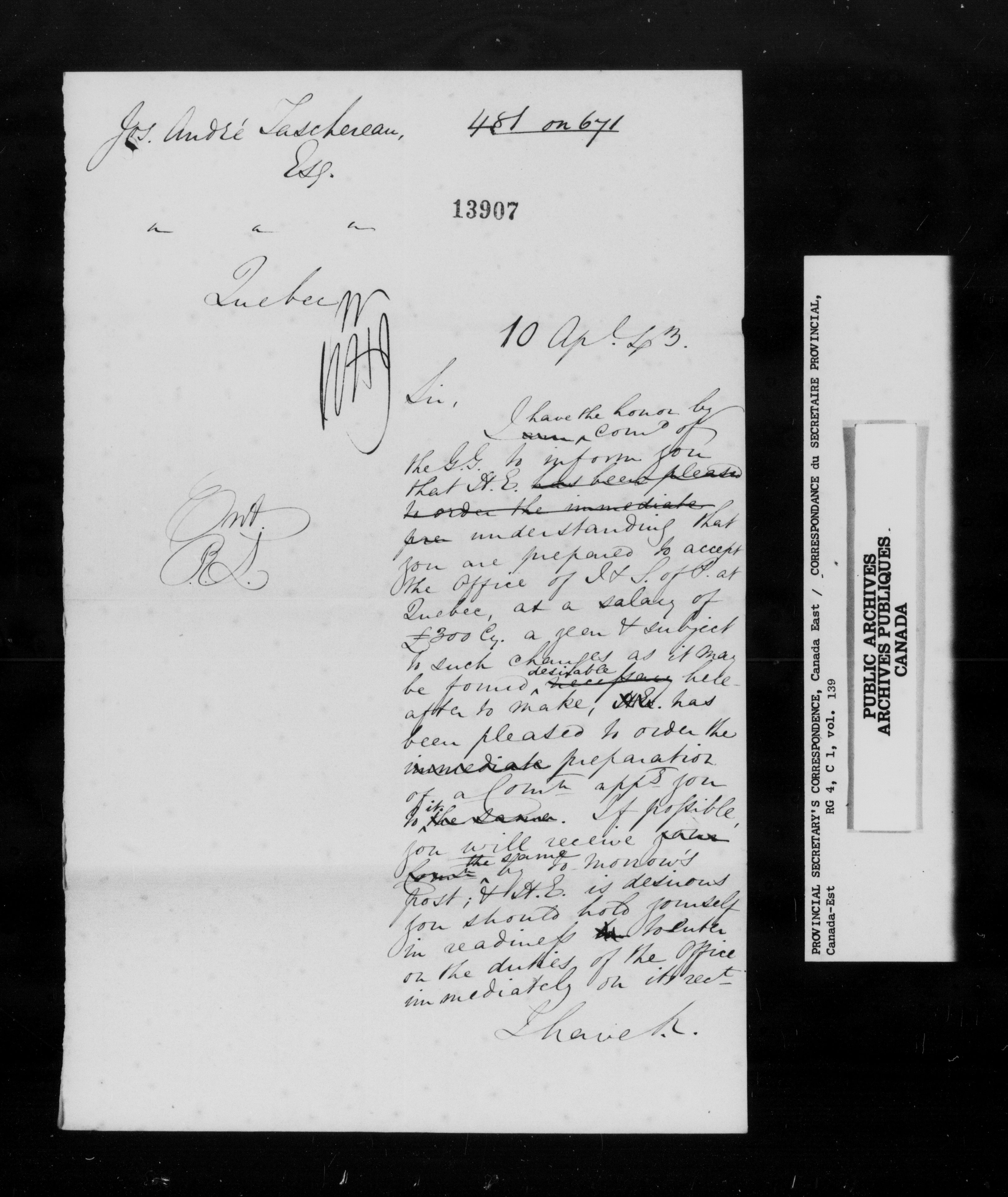 Provincial Secretary, Canada East : Numbered Correspondence Files, 1839-1867 - 13537