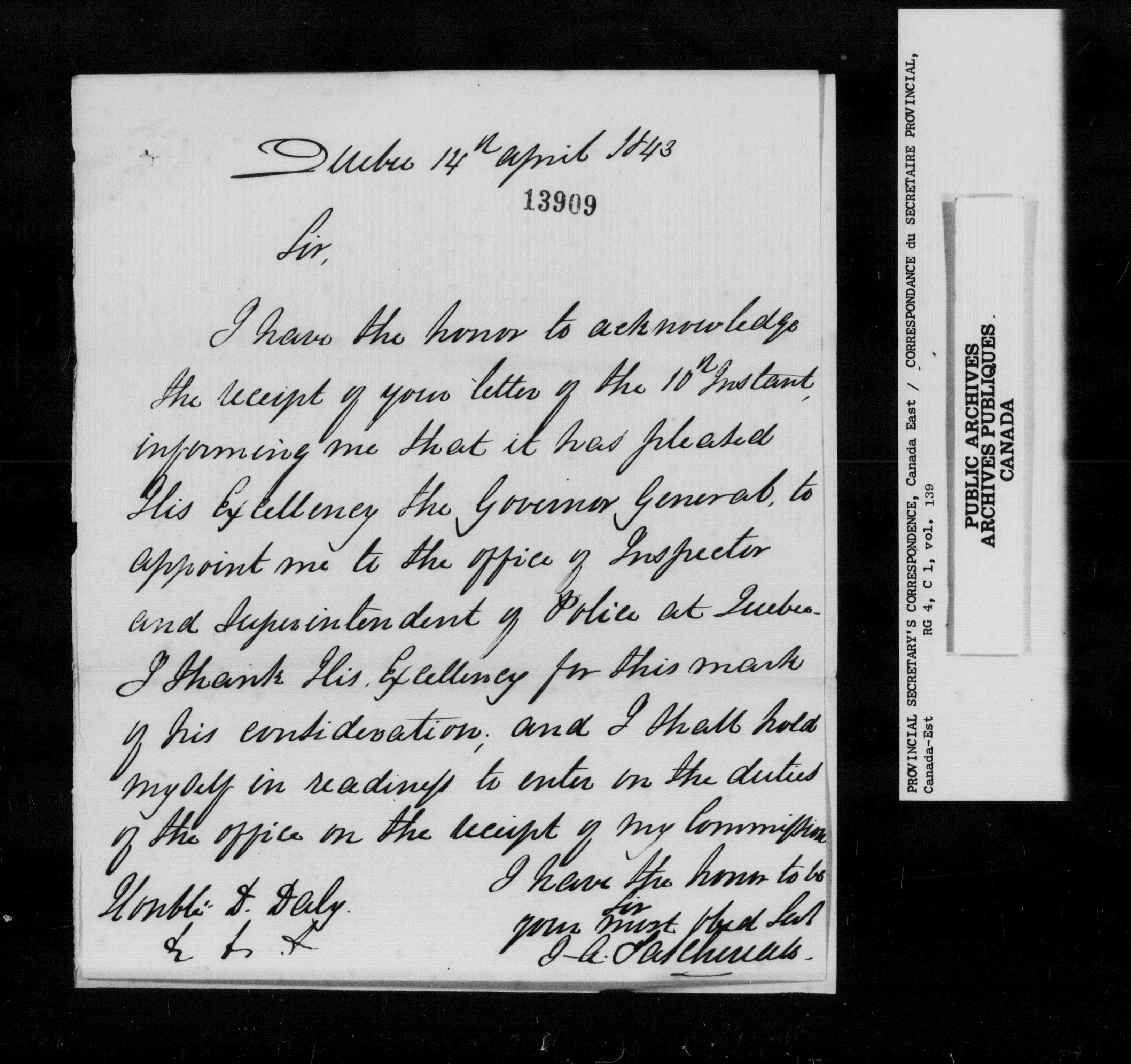 Provincial Secretary, Canada East : Numbered Correspondence Files, 1839-1867 - 13537