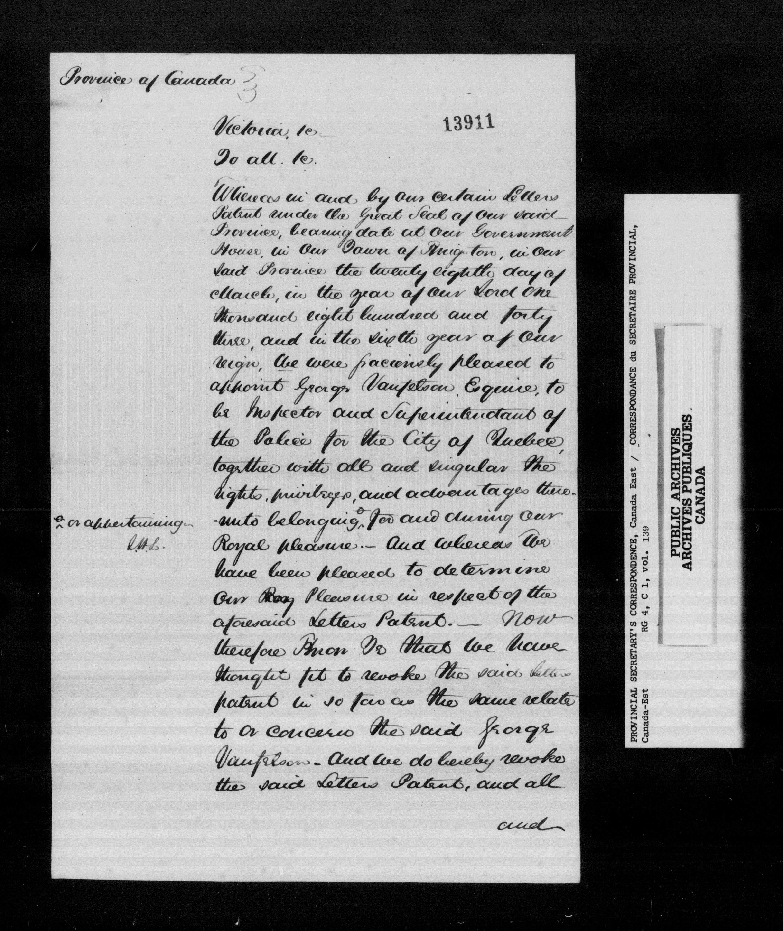 Provincial Secretary, Canada East : Numbered Correspondence Files, 1839-1867 - 13537