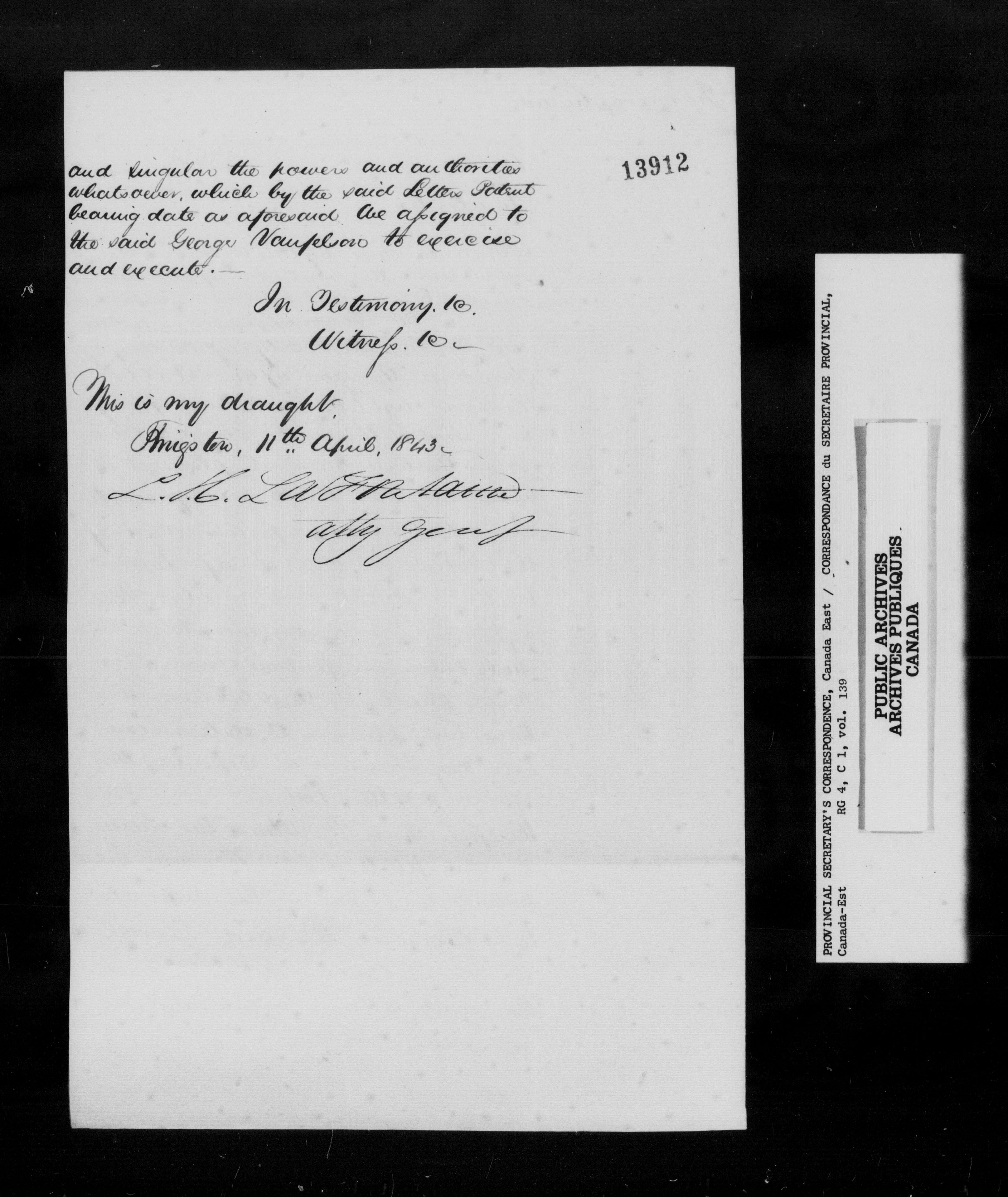 Provincial Secretary, Canada East : Numbered Correspondence Files, 1839-1867 - 13537