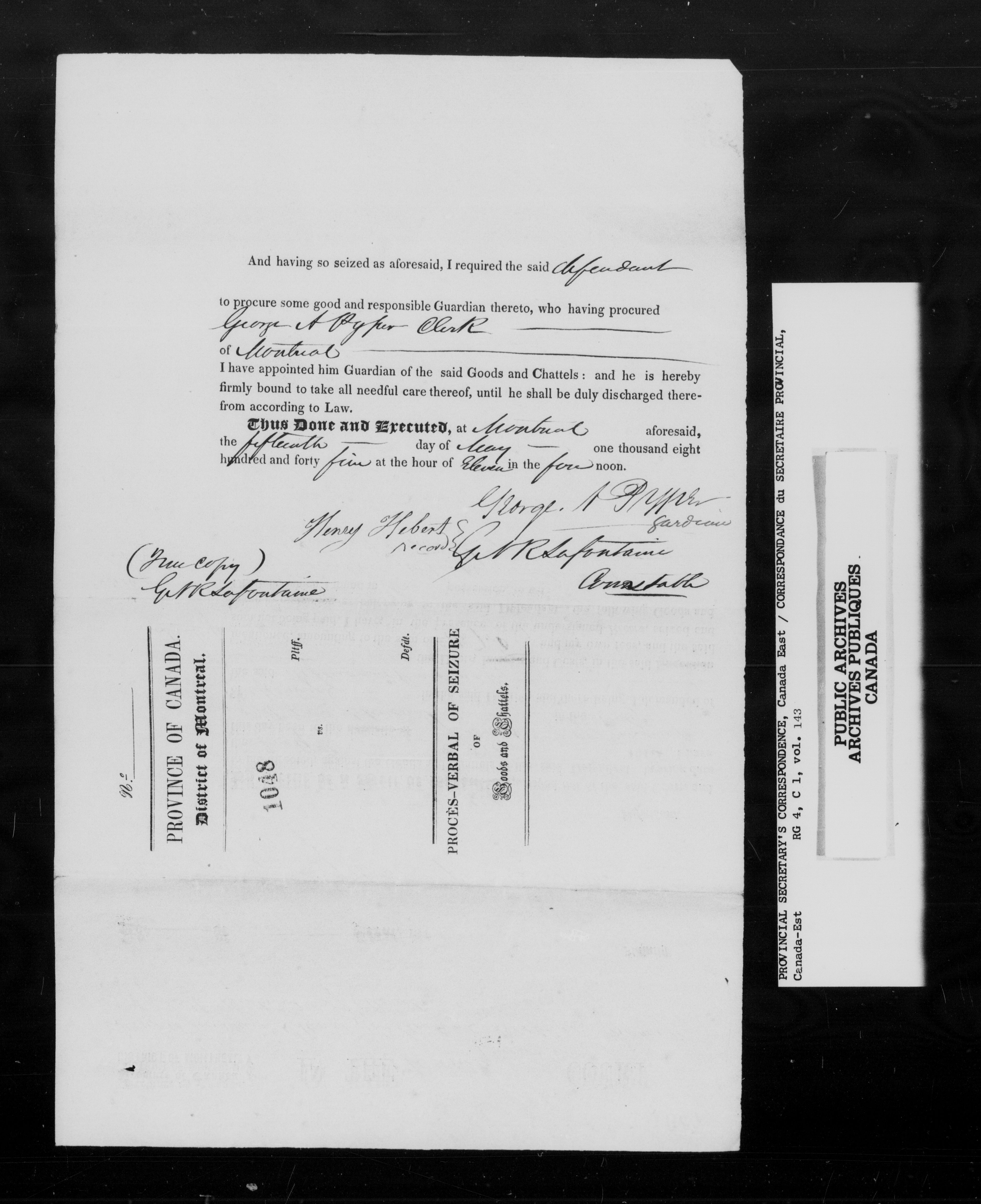 RG 4 C1, Provincial Secretary, Correspondence, Canada East - 13538