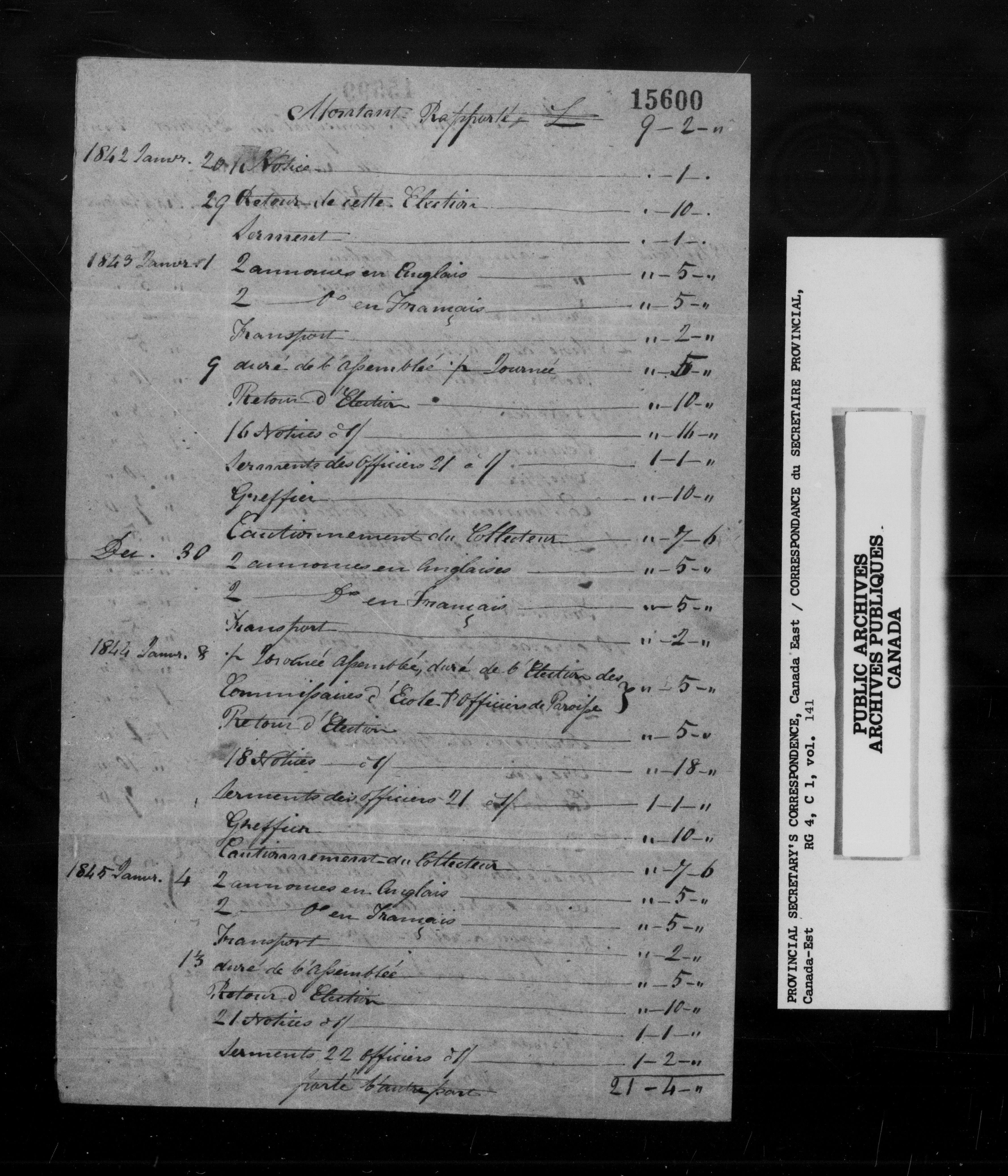 RG 4 C1, Provincial Secretary, Correspondence, Canada East - 13538