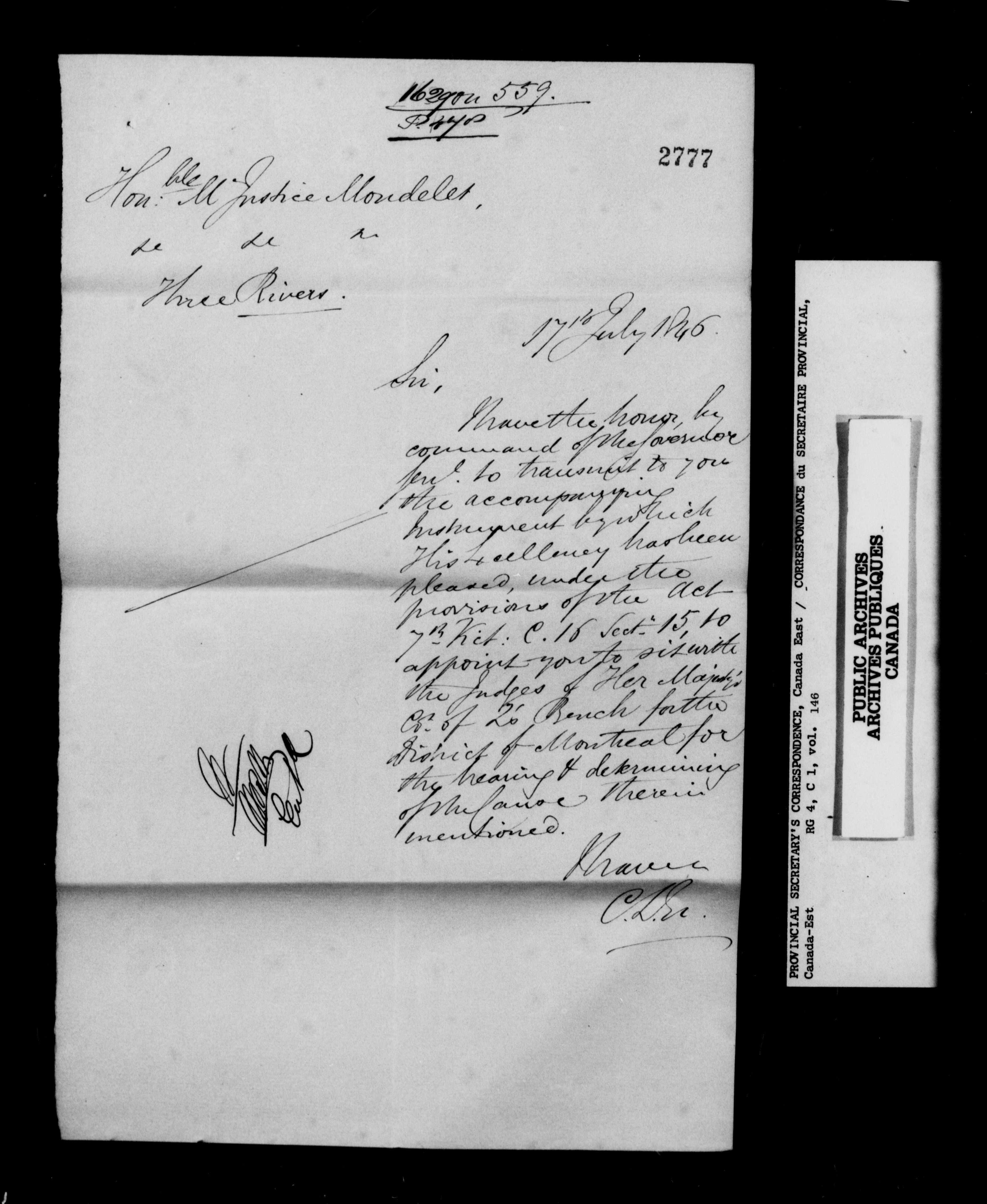 RG 4 C1, Provincial Secretary, Correspondence, Canada East - 13539