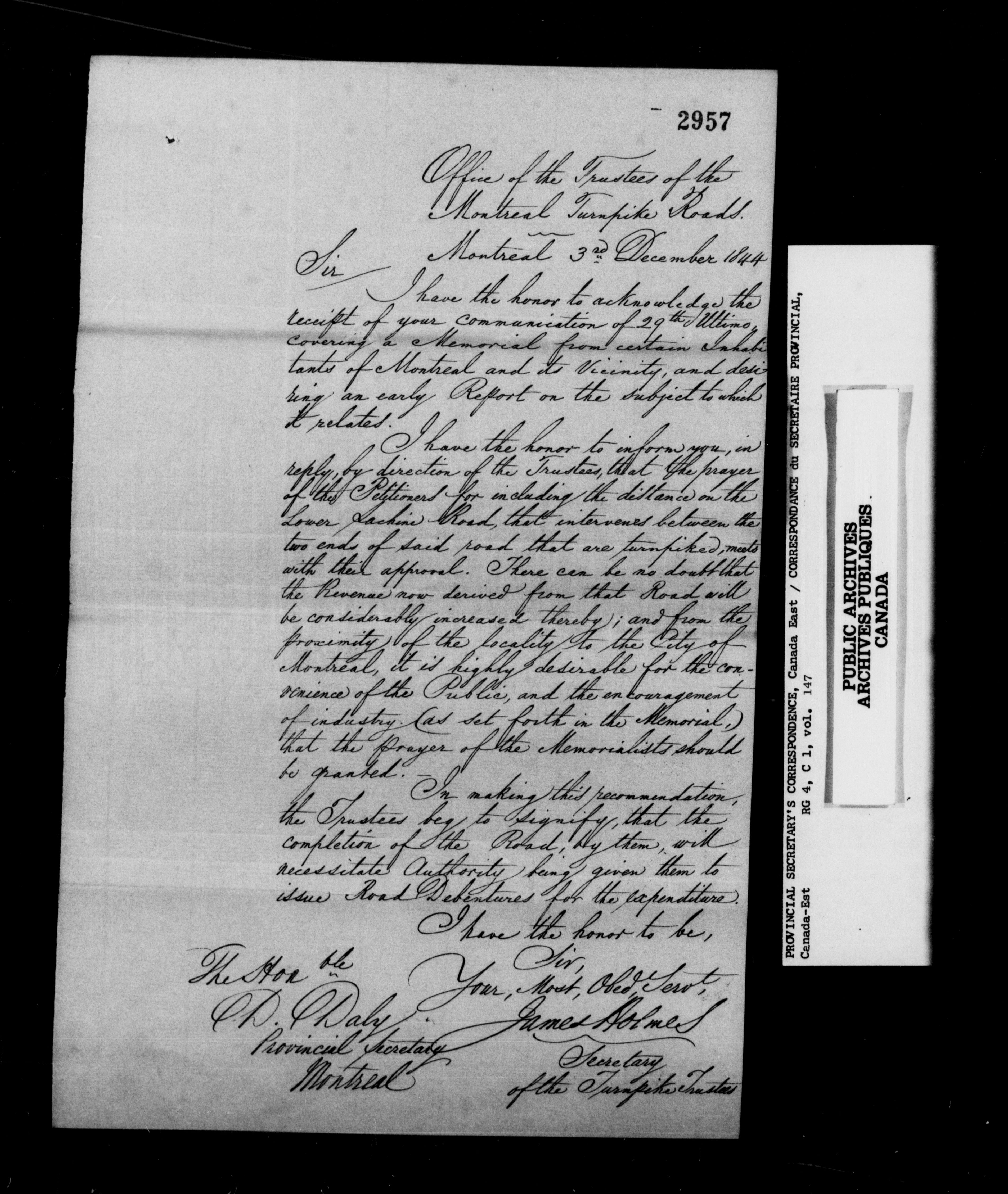 RG 4 C1, Provincial Secretary, Correspondence, Canada East - 13540