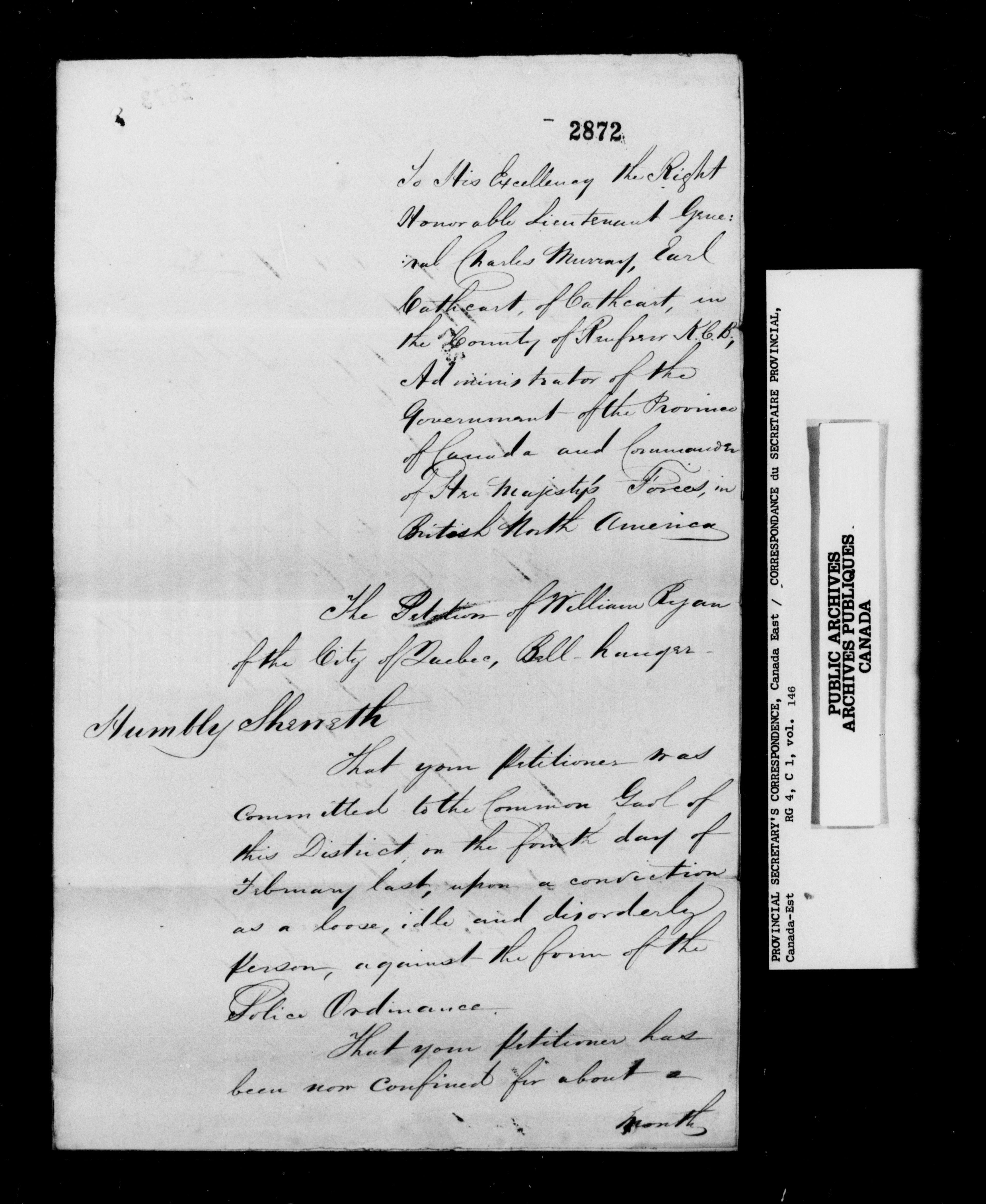 RG 4 C1, Provincial Secretary, Correspondence, Canada East - 13540