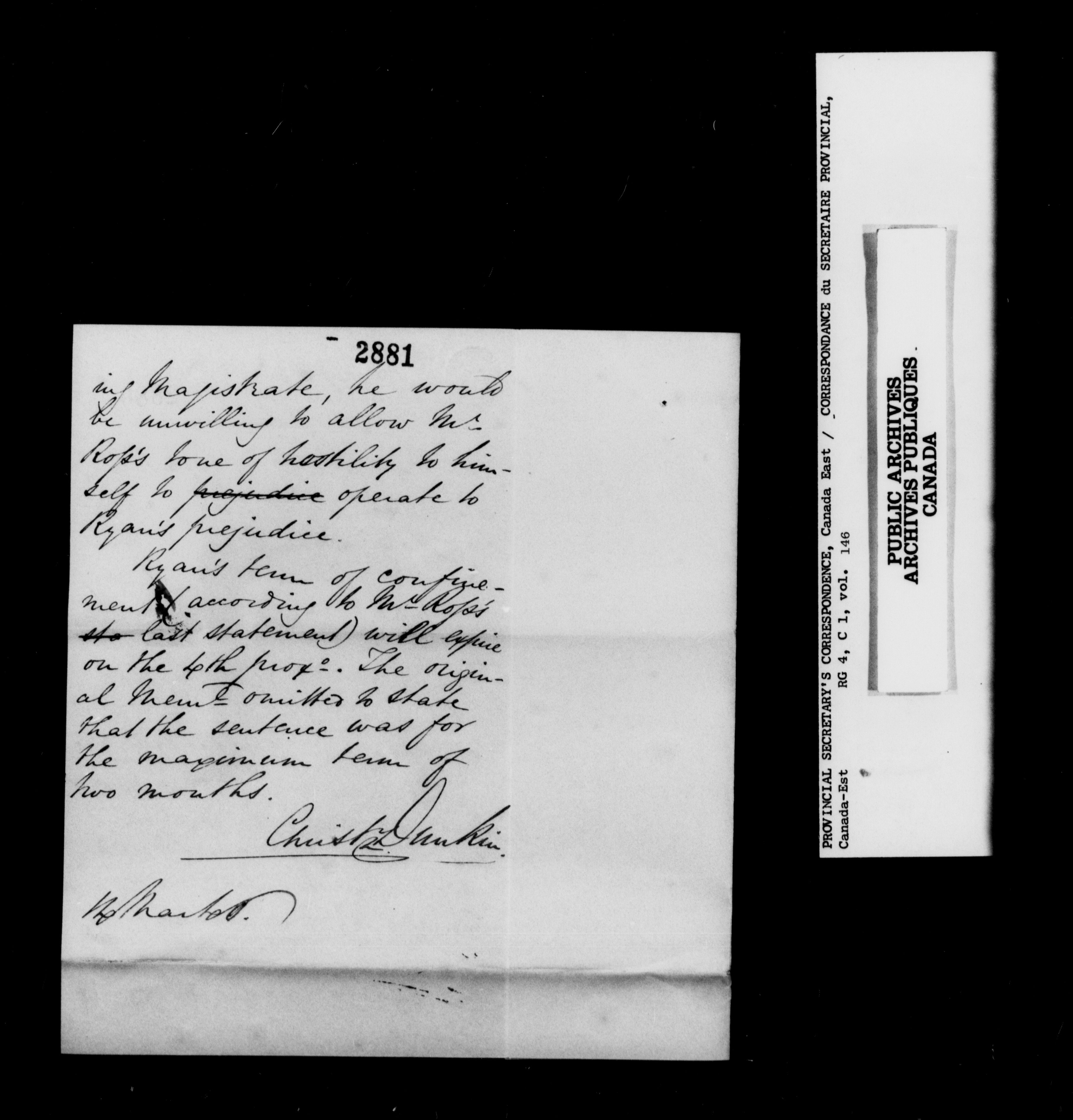 RG 4 C1, Provincial Secretary, Correspondence, Canada East - 13540