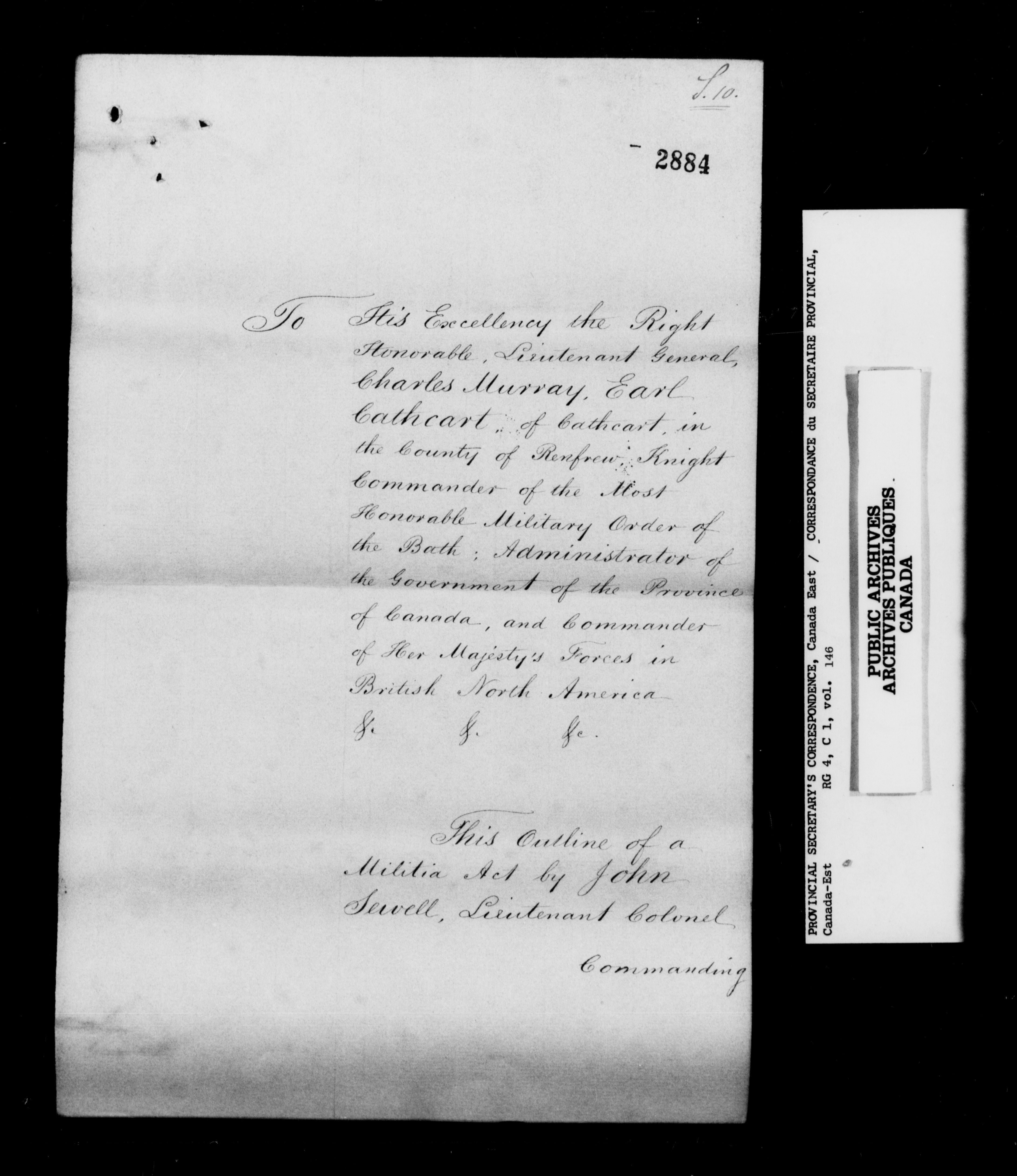 RG 4 C1, Provincial Secretary, Correspondence, Canada East - 13540