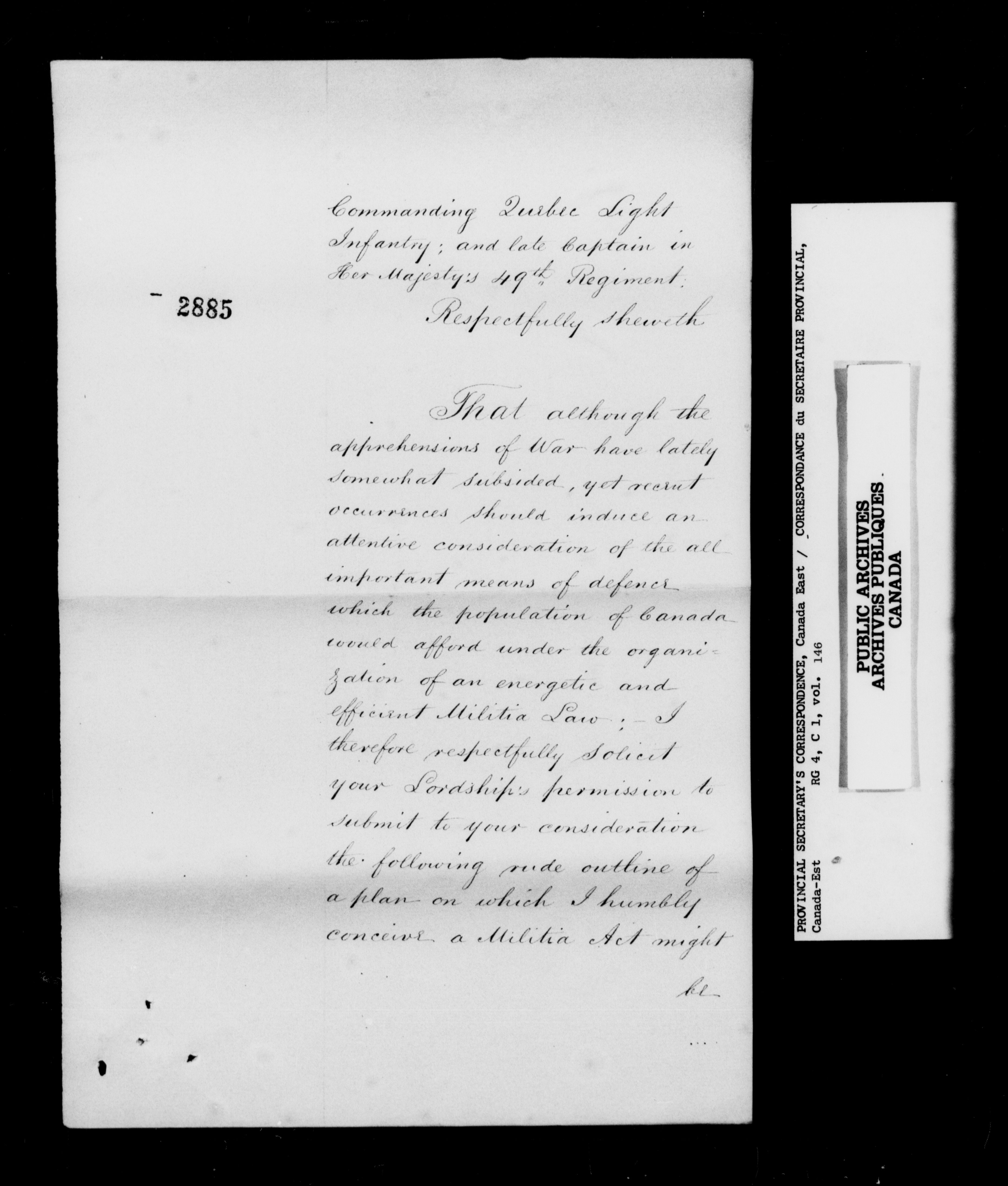 RG 4 C1, Provincial Secretary, Correspondence, Canada East - 13540
