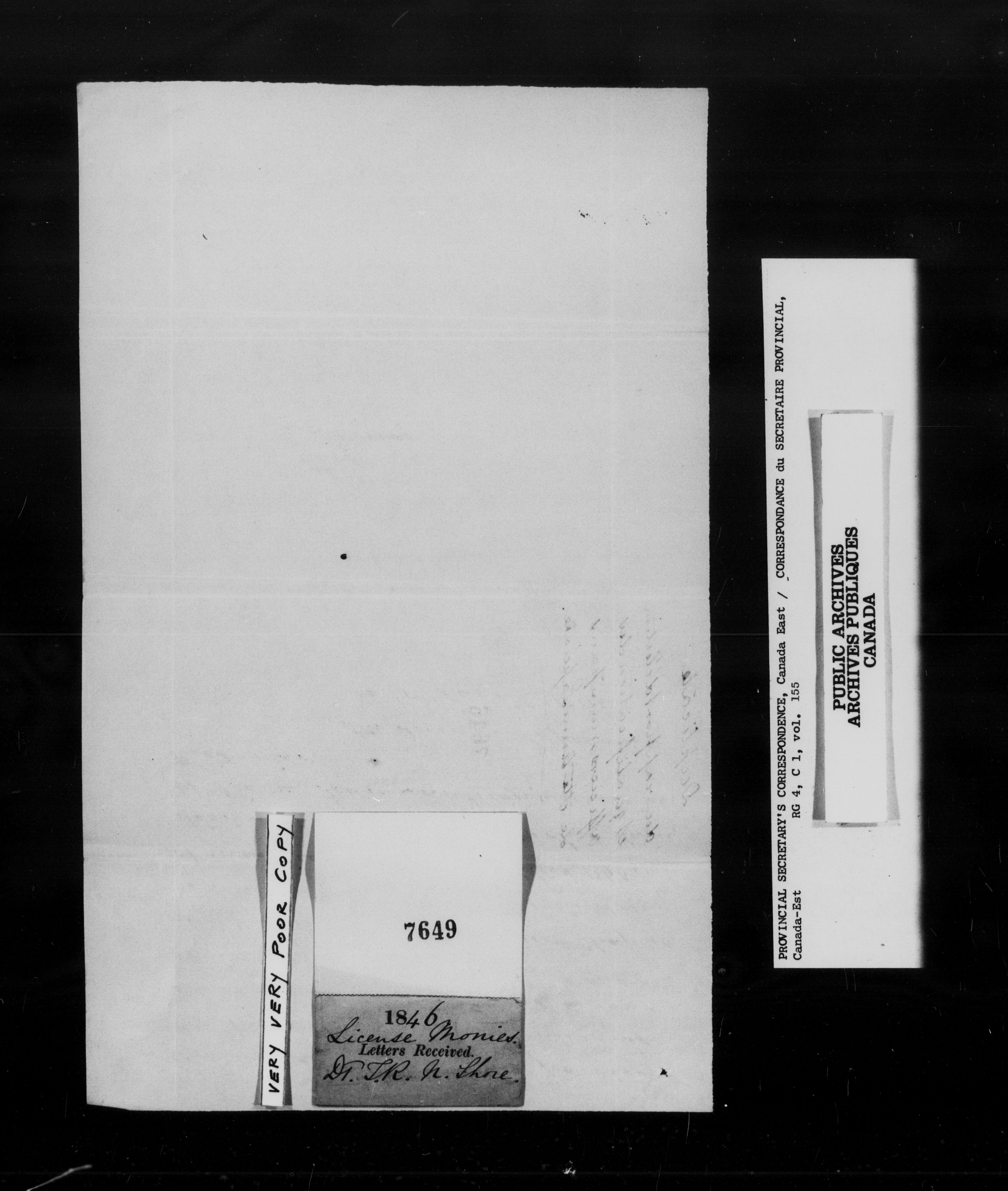 RG 4 C1, Provincial Secretary, Correspondence, Canada East - 13542