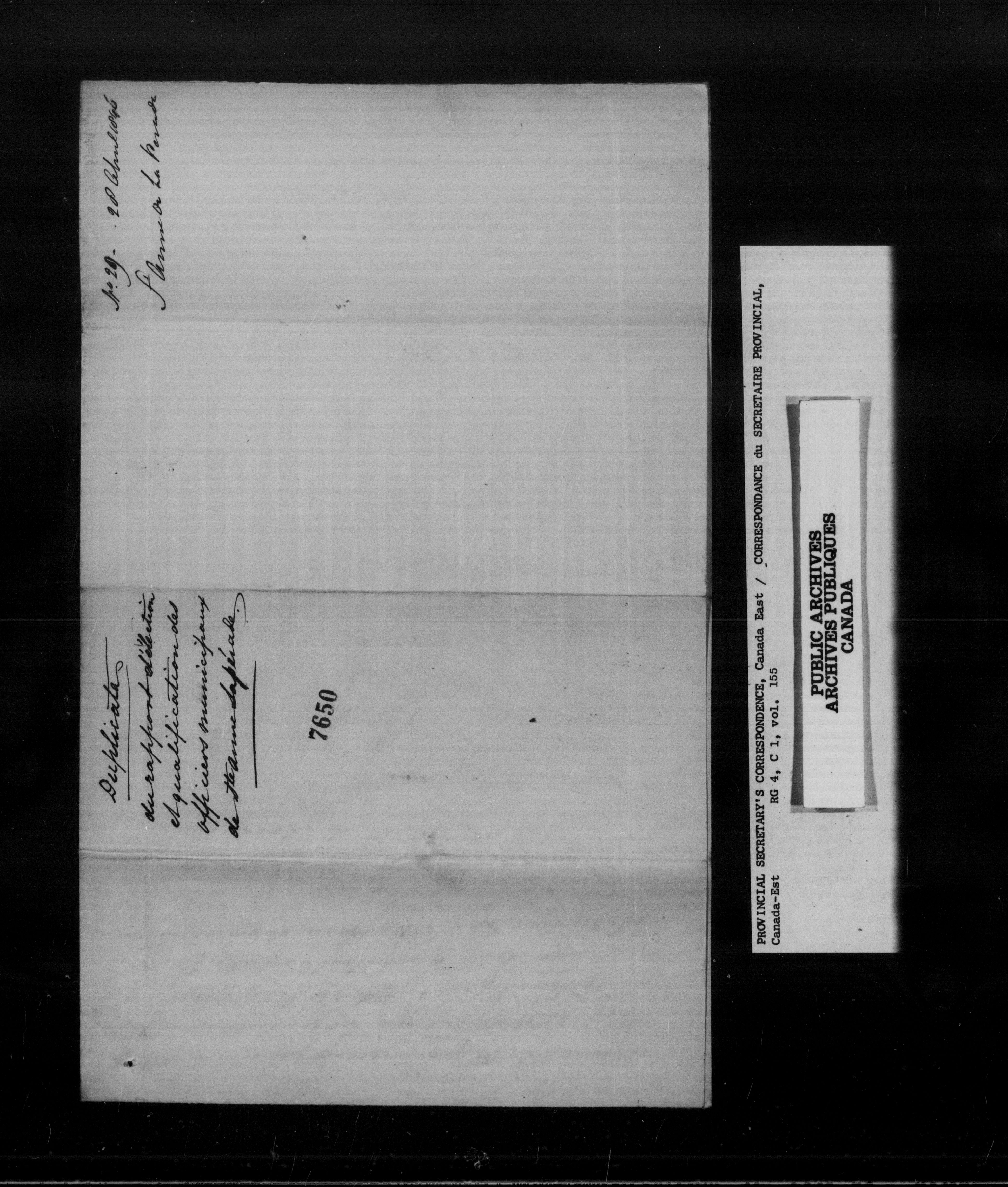 RG 4 C1, Provincial Secretary, Correspondence, Canada East - 13542