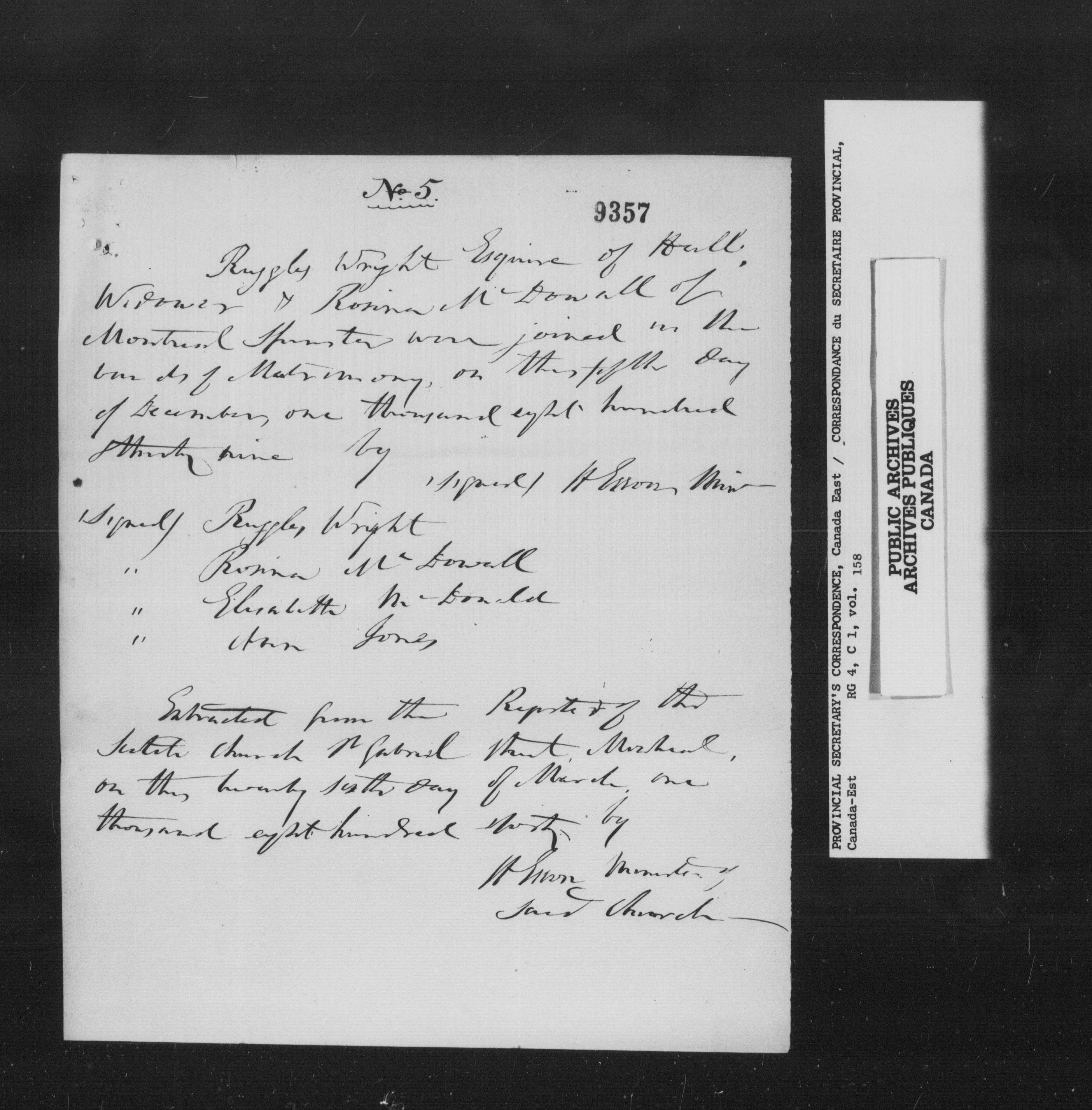 Provincial Secretary, Canada East : Numbered correspondence files, 1839-1867 - 13543