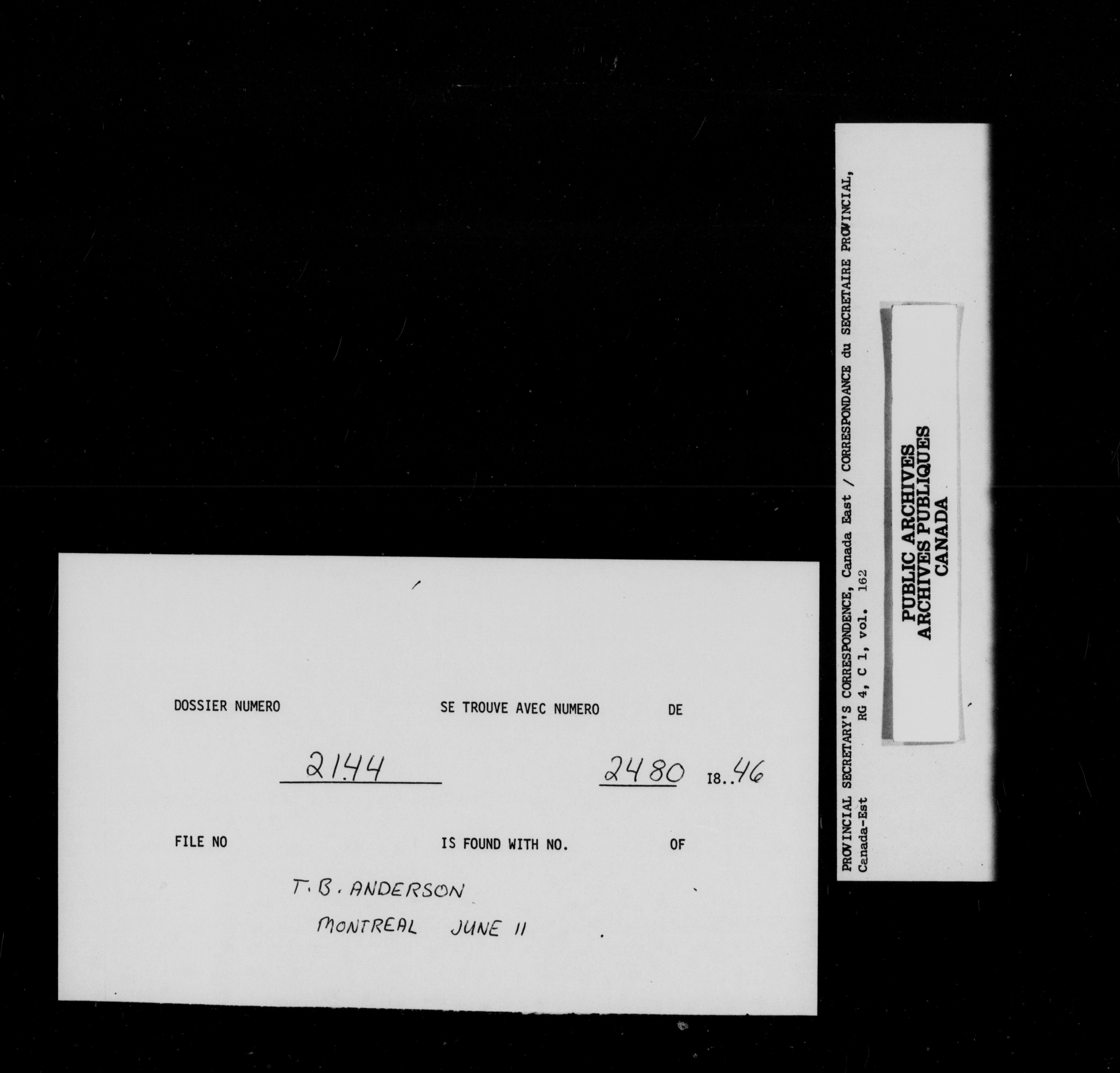 Provincial Secretary, Canada East : Numbered correspondence files, 1839-1867 - 13545