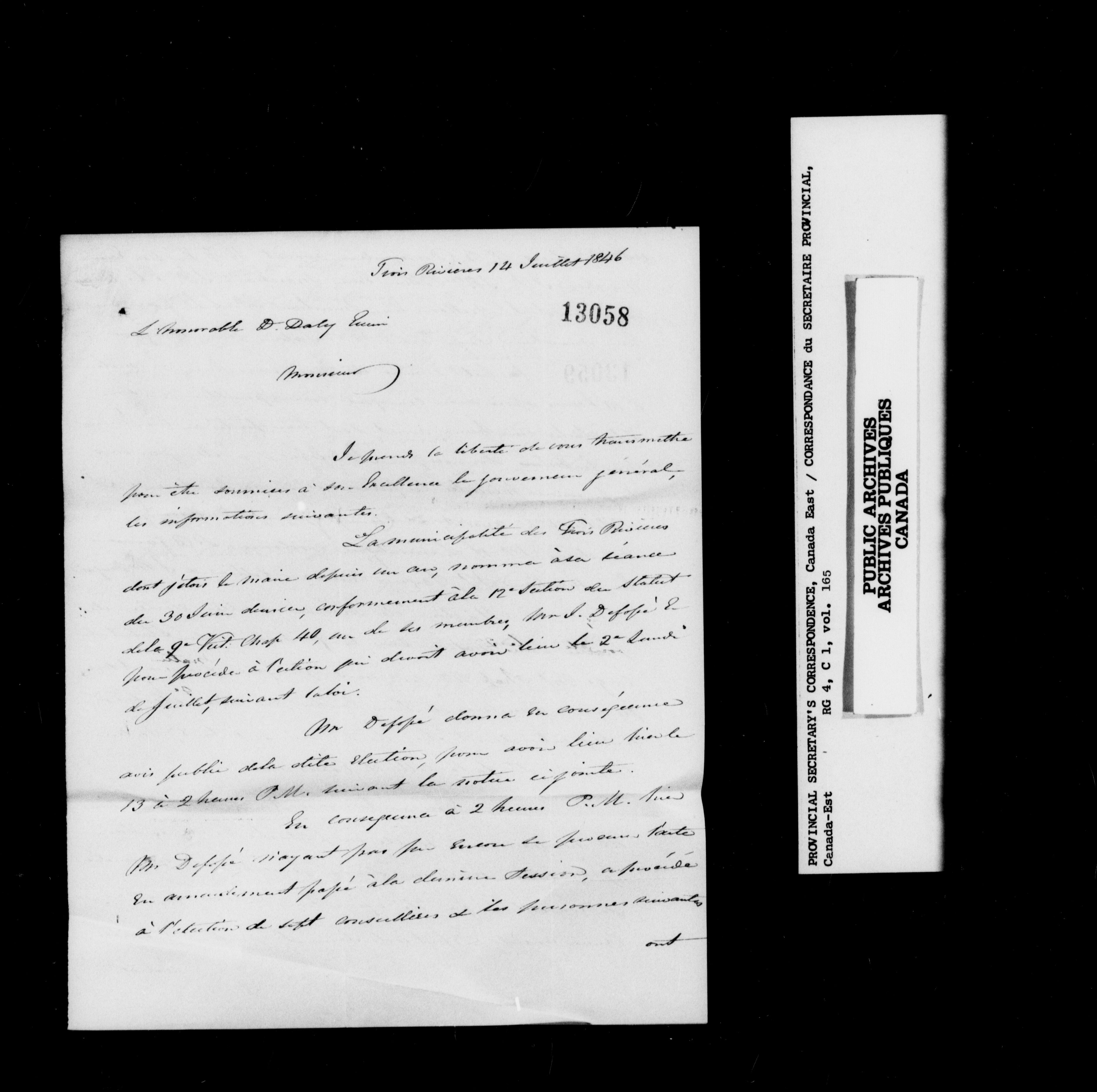 Provincial Secretary, Canada East : Numbered correspondence files, 1839-1867 - 13546