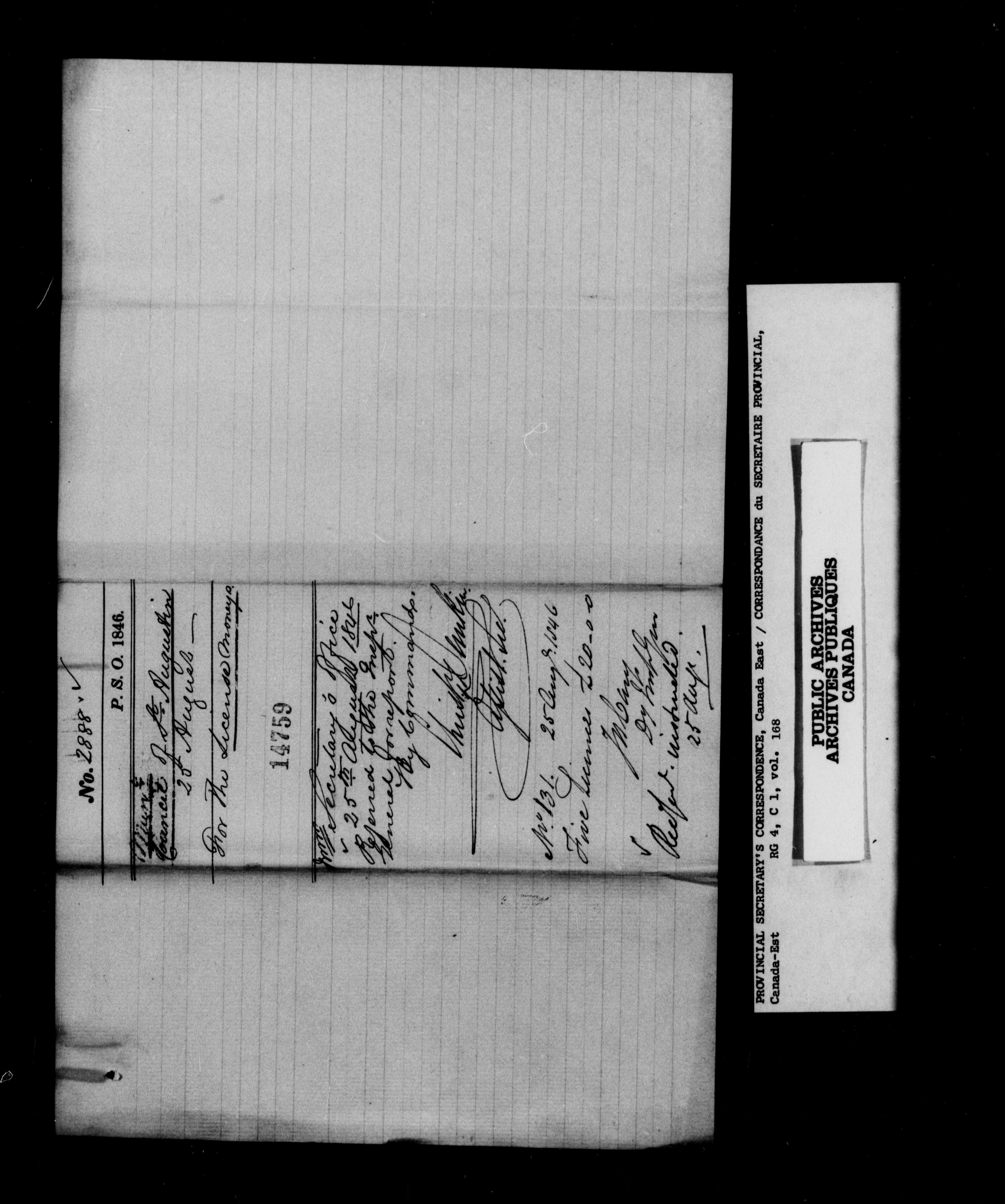 Canada East : Provincial Secretary numbered correspondence files, 1839-1867 : C-13546