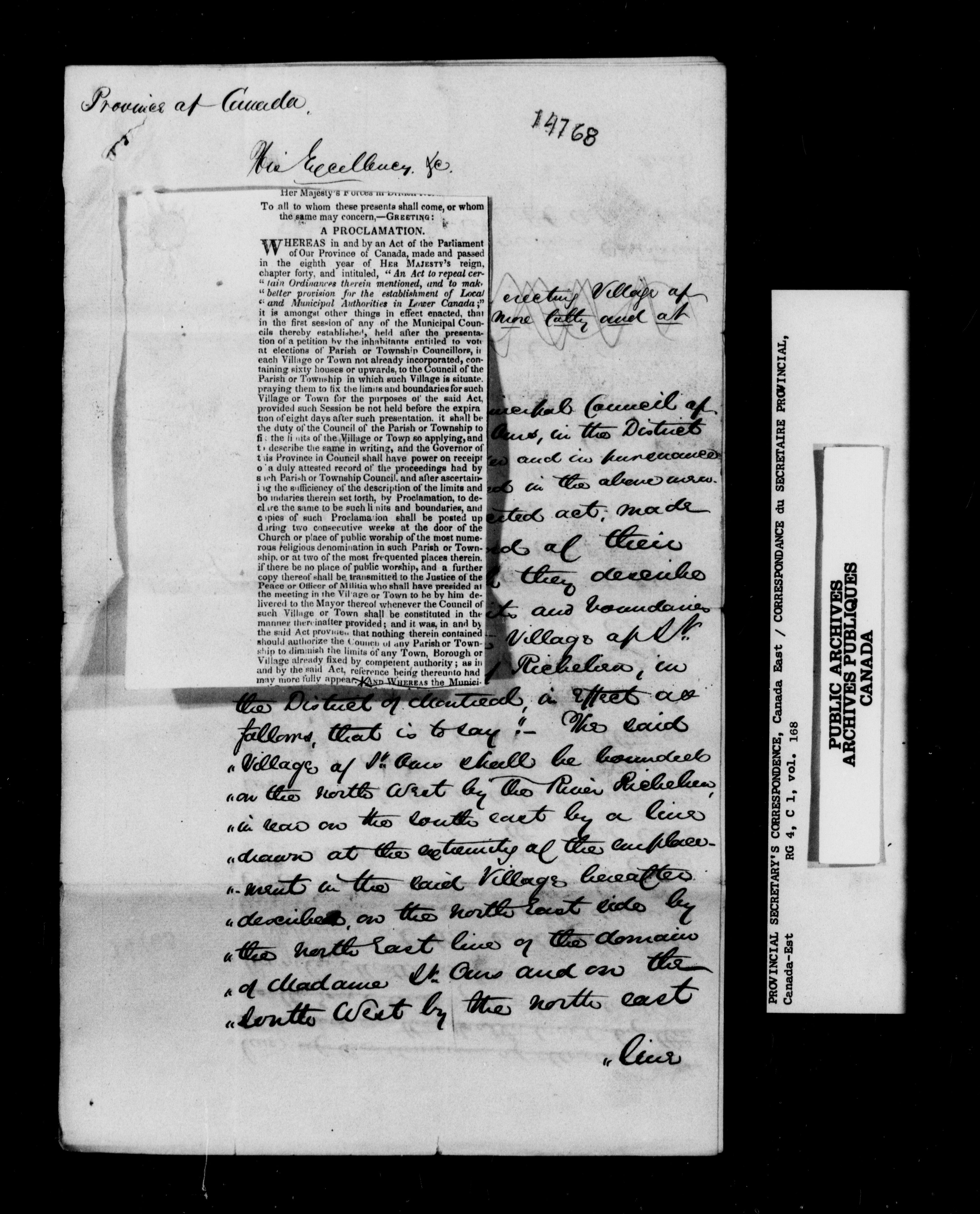 Provincial Secretary, Canada East : Numbered correspondence files, 1839-1867 - 13546