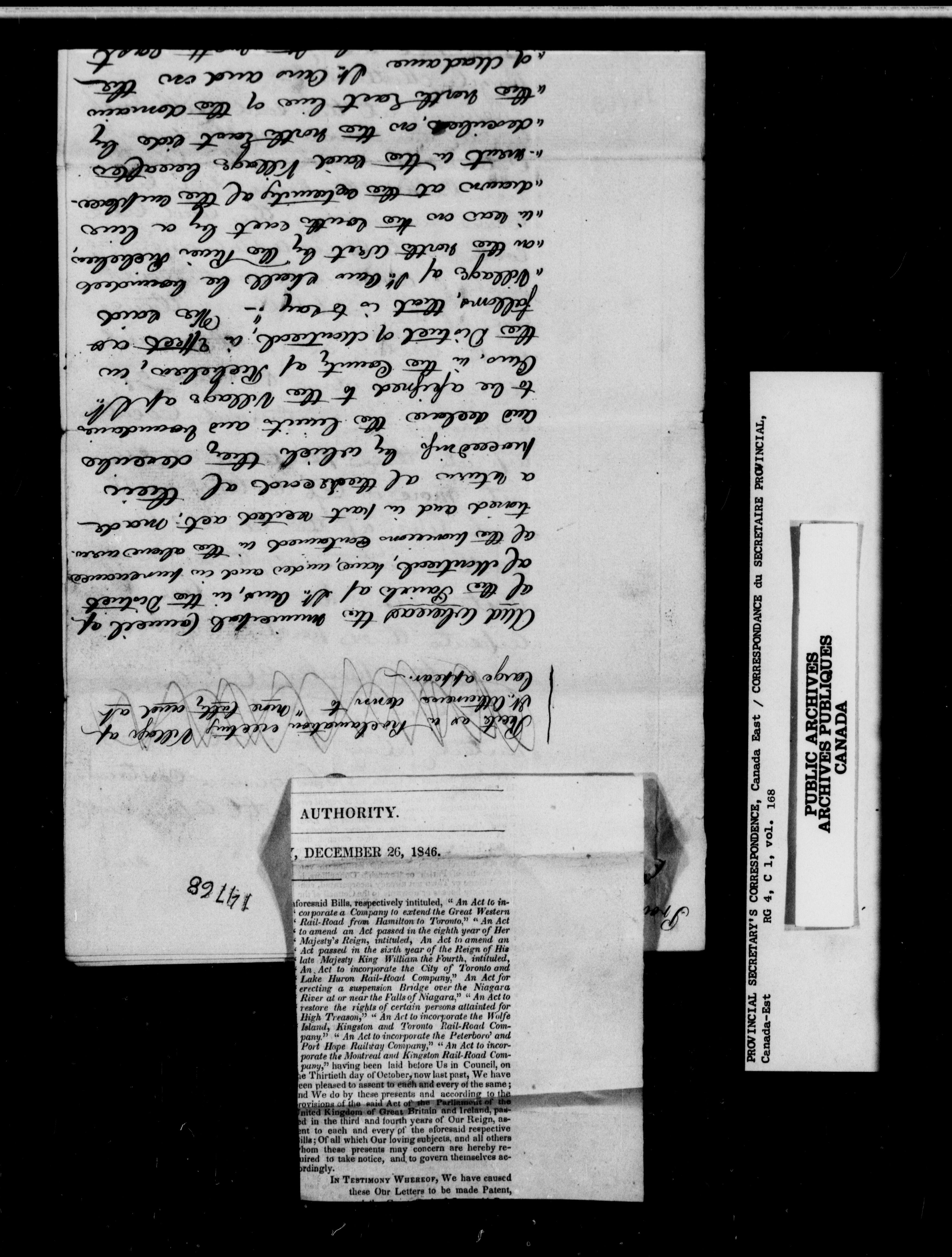 Provincial Secretary, Canada East : Numbered correspondence files, 1839-1867 - 13546
