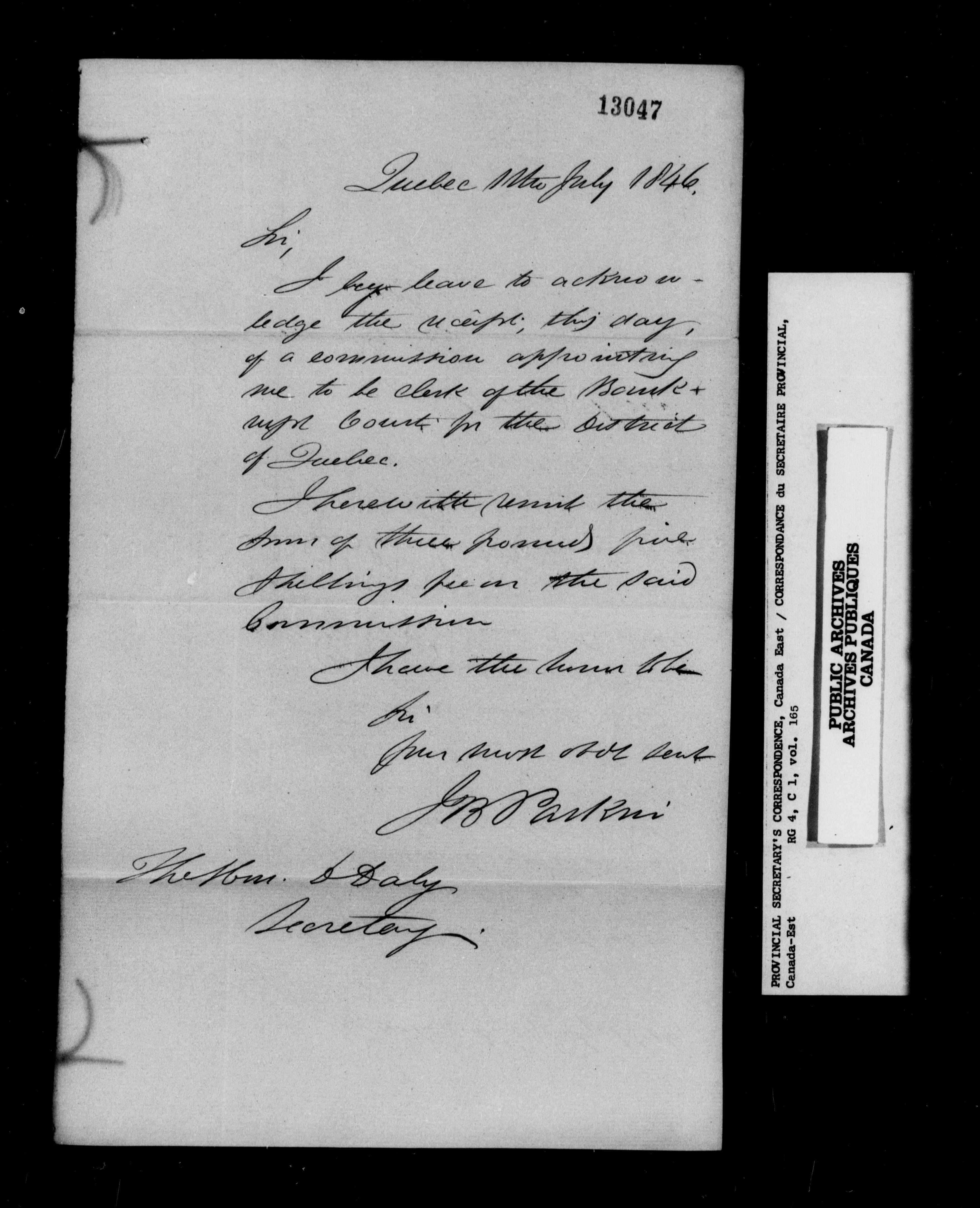 Provincial Secretary, Canada East : Numbered correspondence files, 1839-1867 - 13546