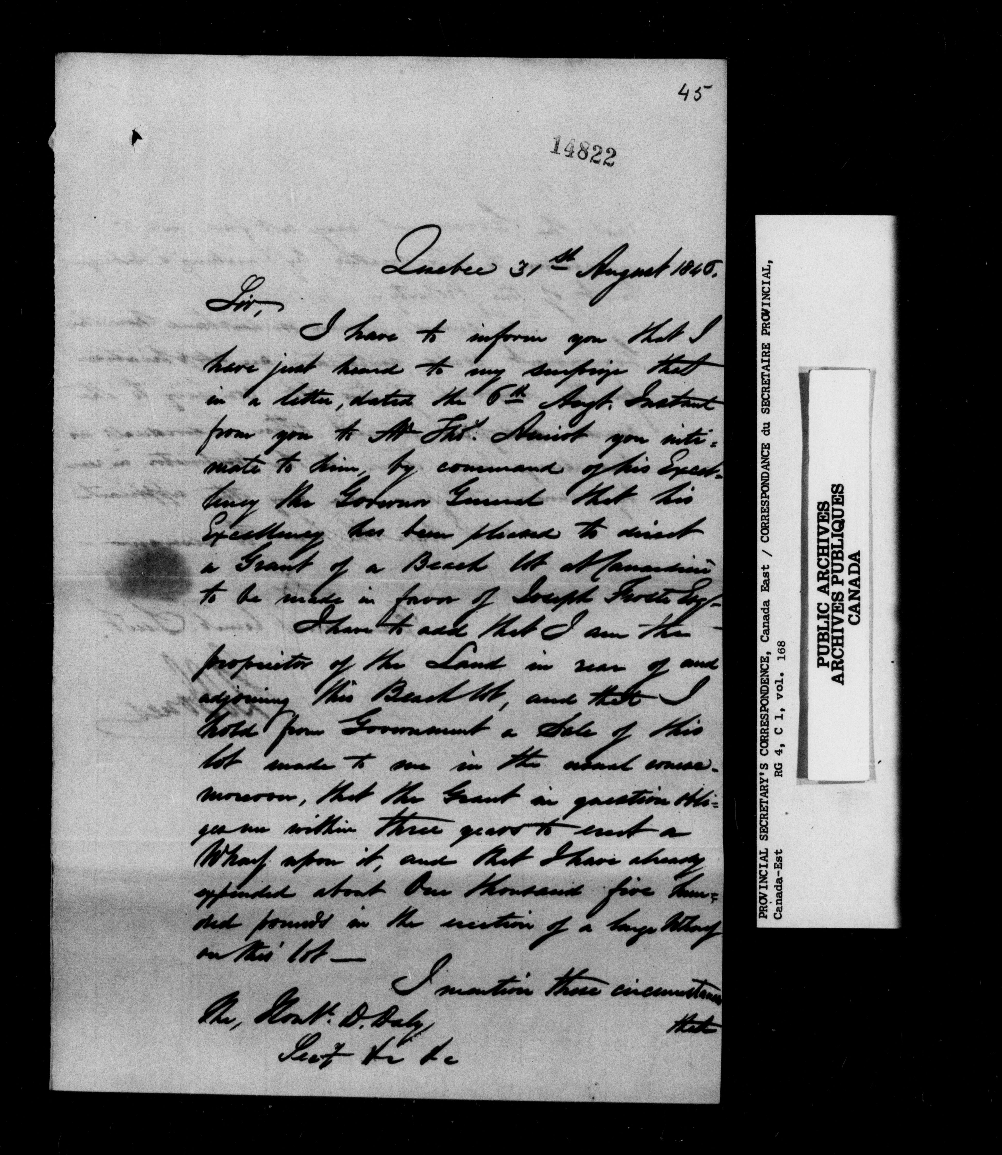 Provincial Secretary, Canada East : Numbered correspondence files, 1839-1867 - 13547