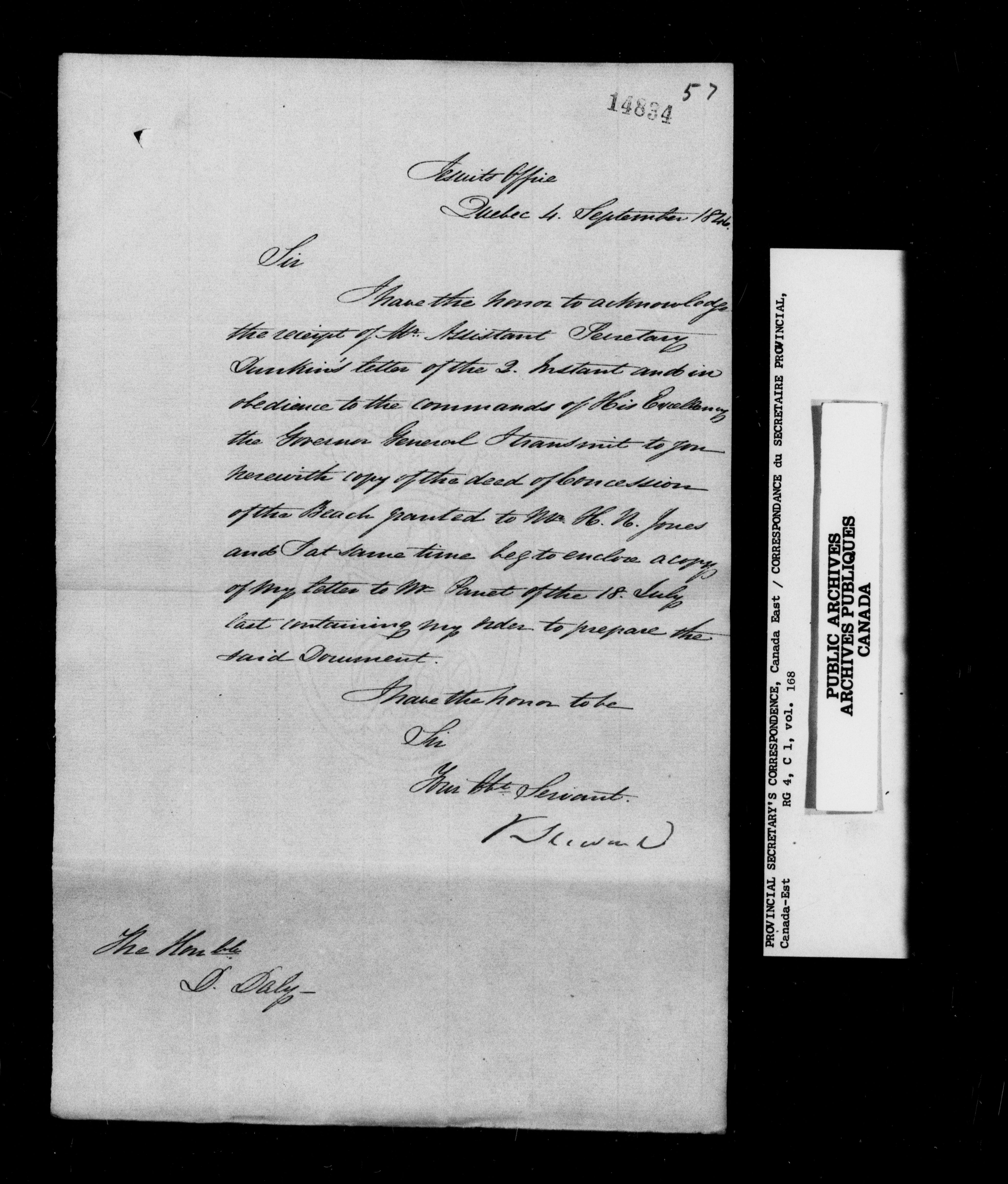 Provincial Secretary, Canada East : Numbered correspondence files, 1839-1867 - 13547