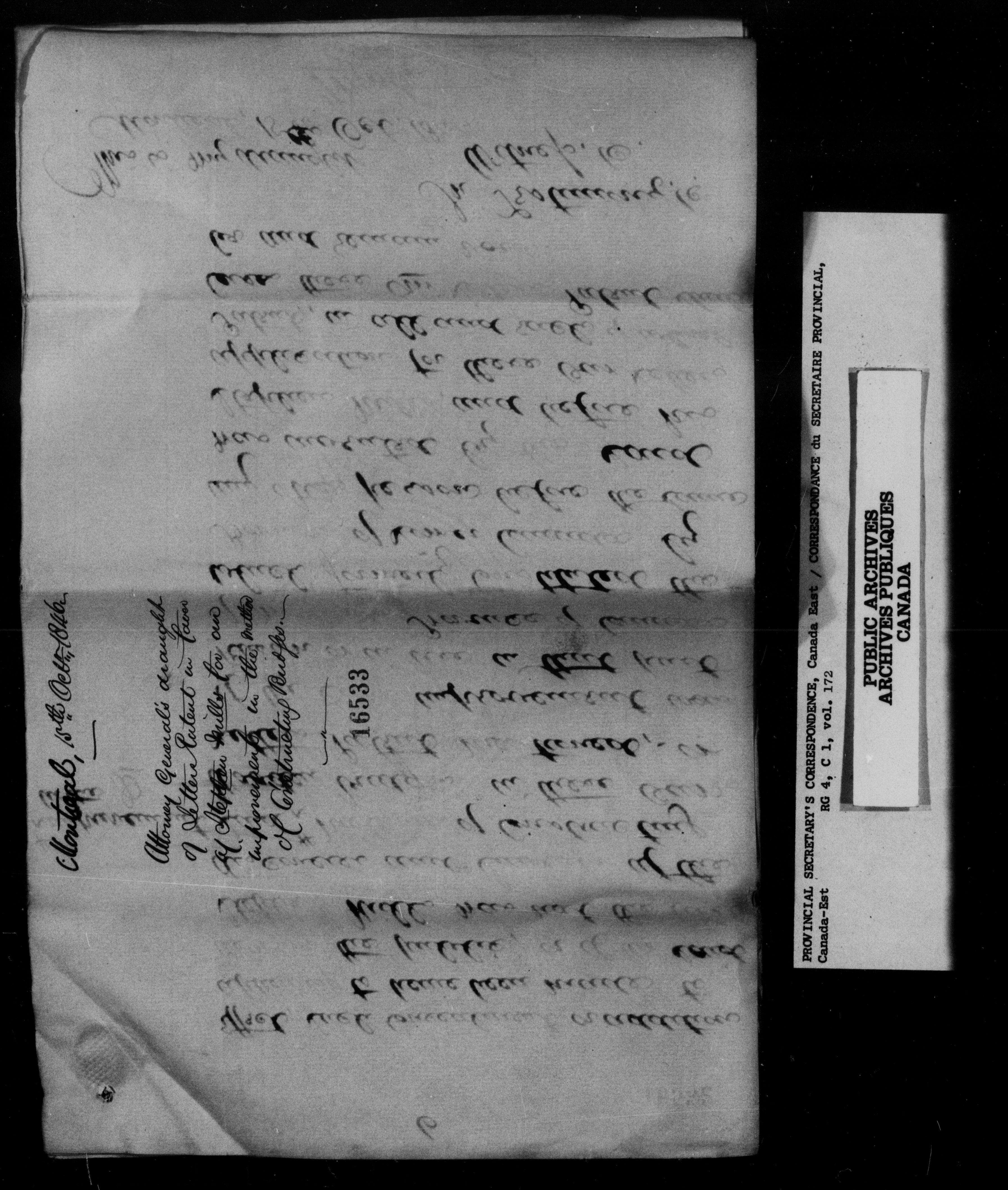 RG 4 C1, Provincial Secretary, Correspondence, Canada East - 13548