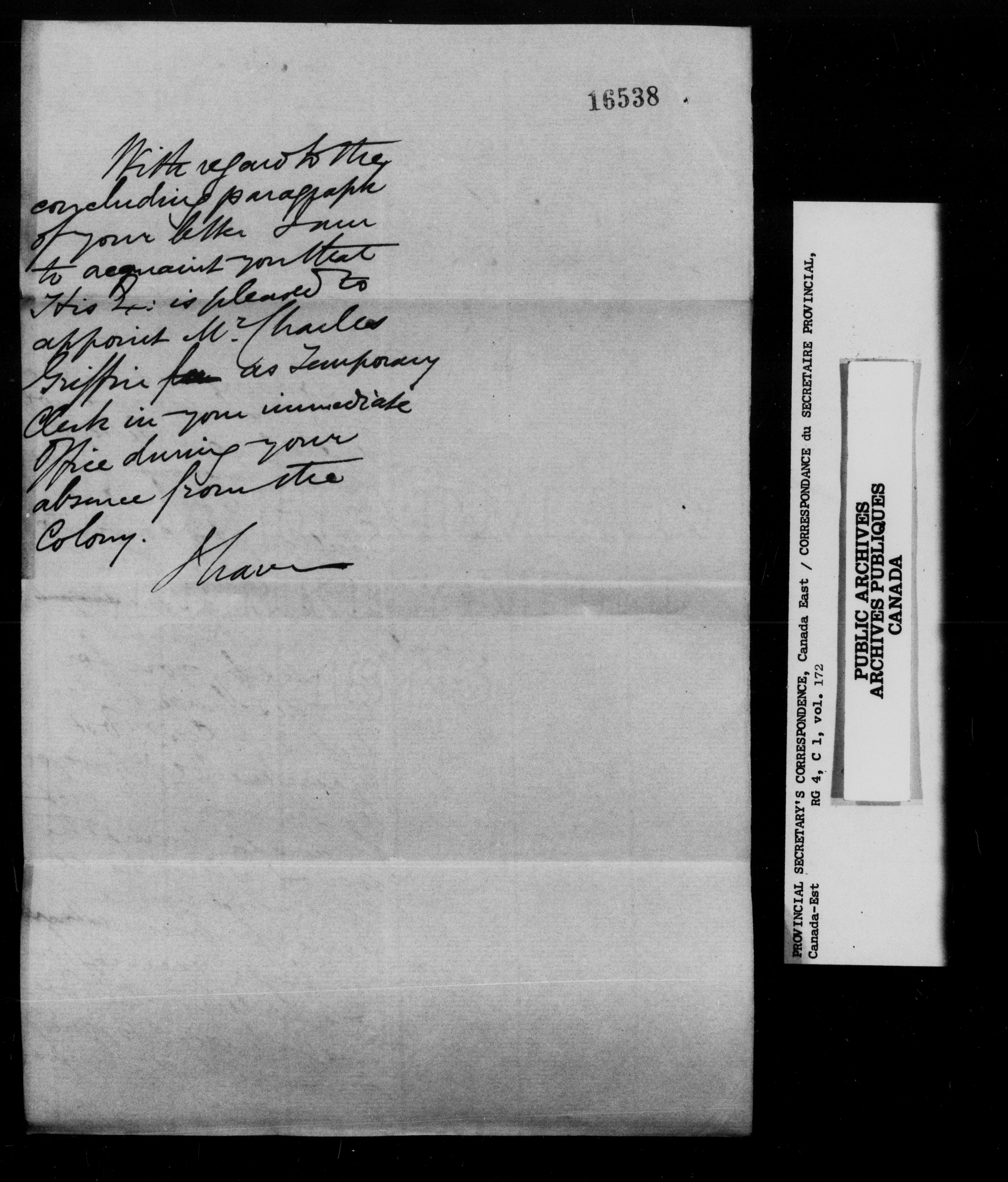 RG 4 C1, Provincial Secretary, Correspondence, Canada East - 13548