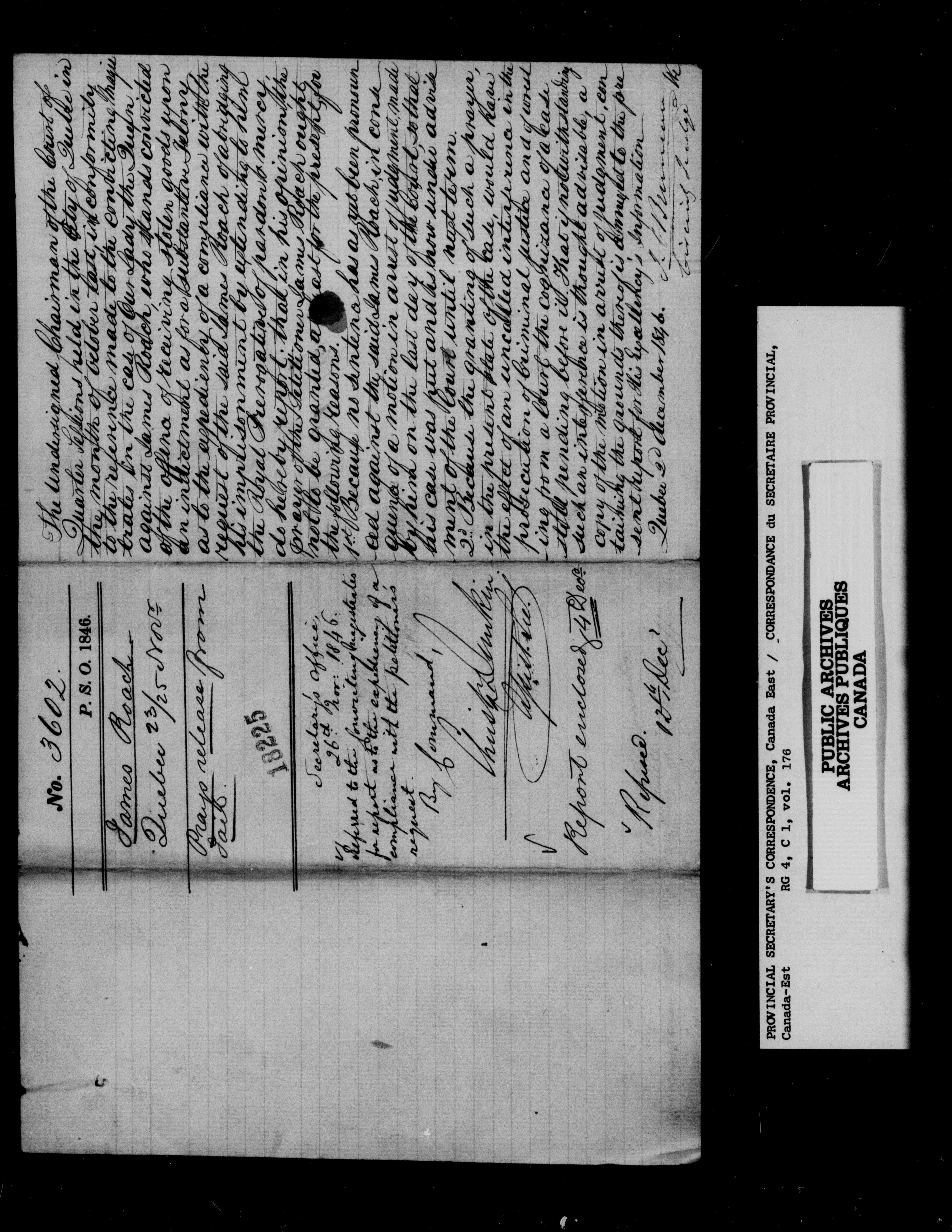 RG 4 C1, Provincial Secretary, Correspondence, Canada East - 13549