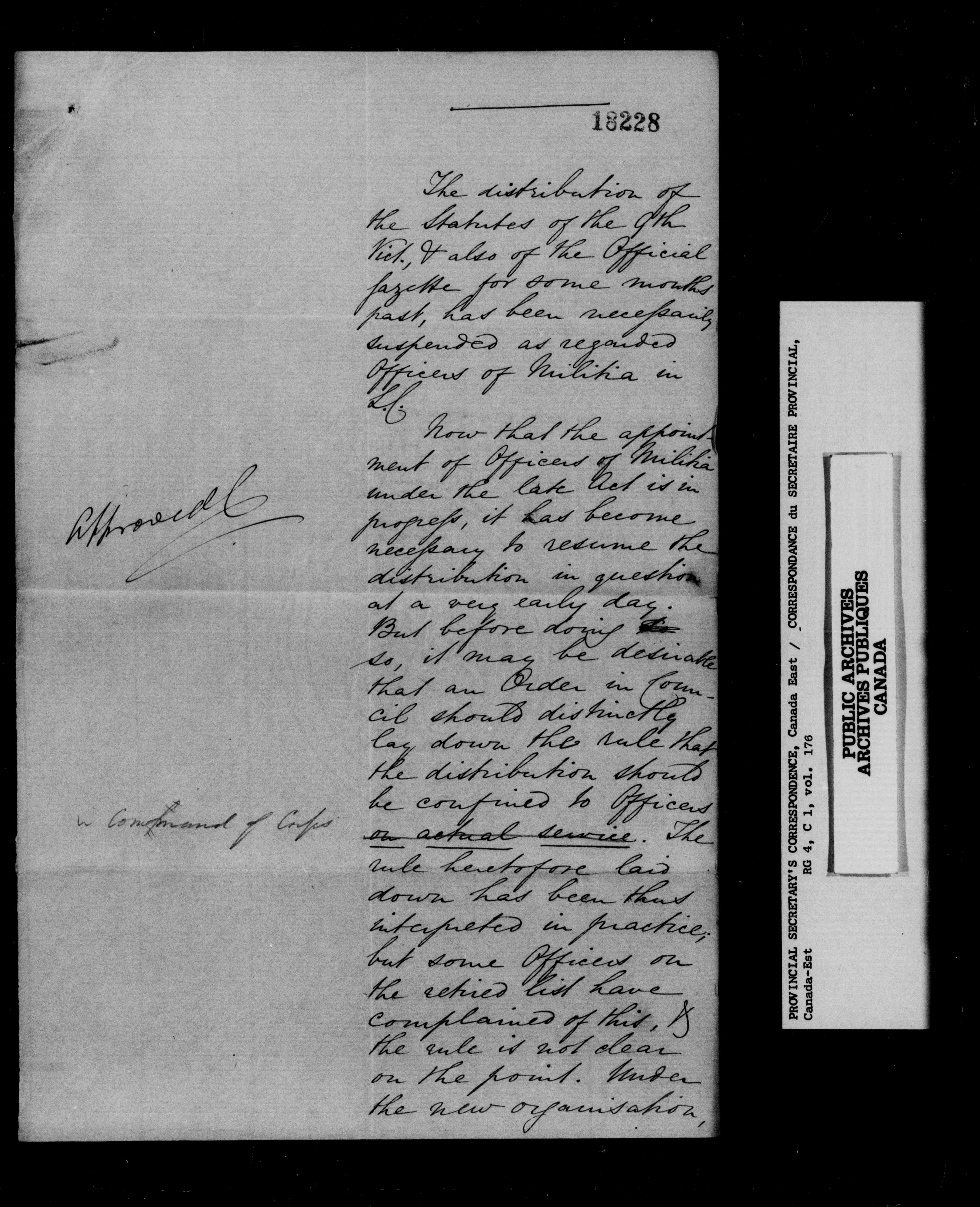 RG 4 C1, Provincial Secretary, Correspondence, Canada East - 13549
