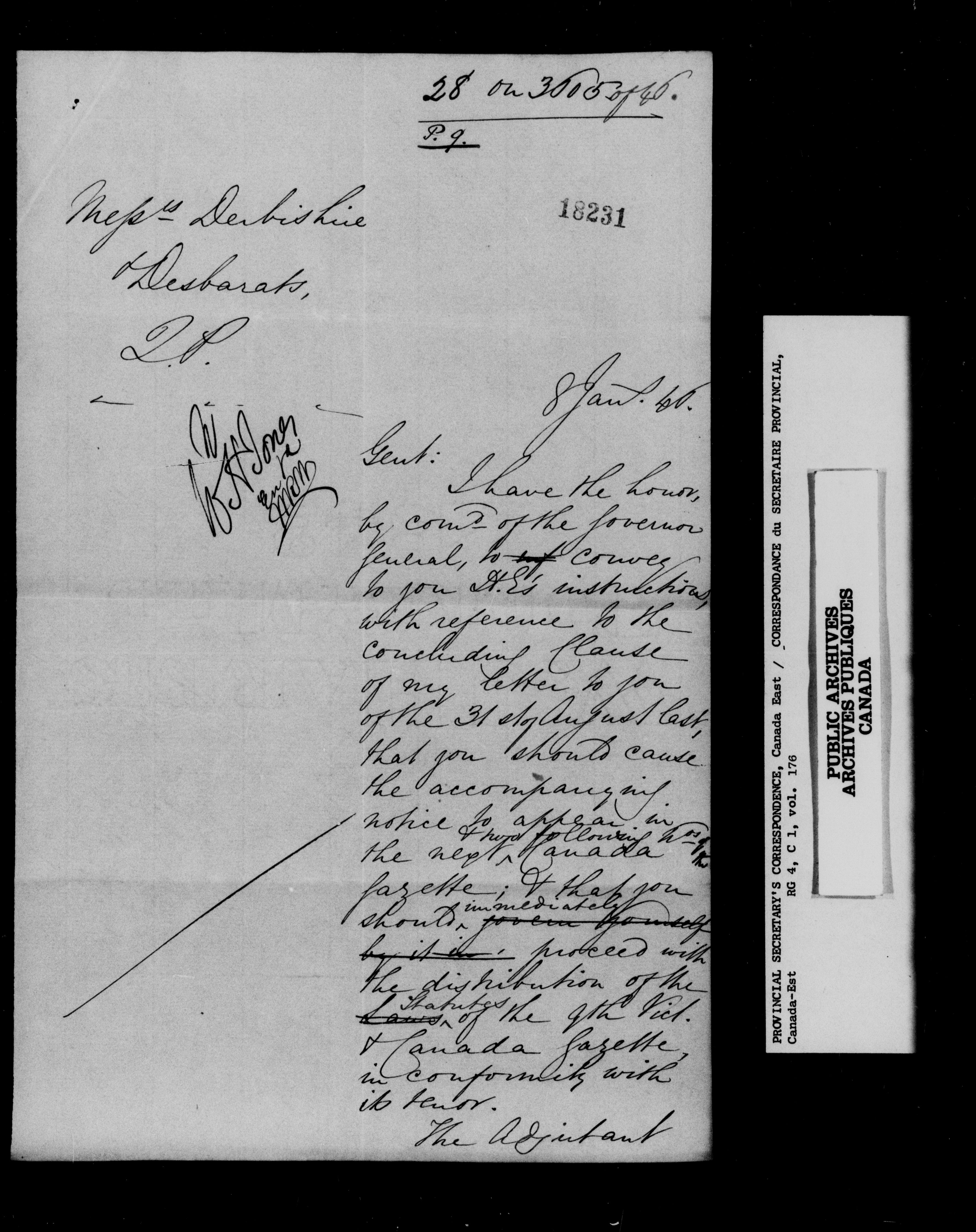 RG 4 C1, Provincial Secretary, Correspondence, Canada East - 13549