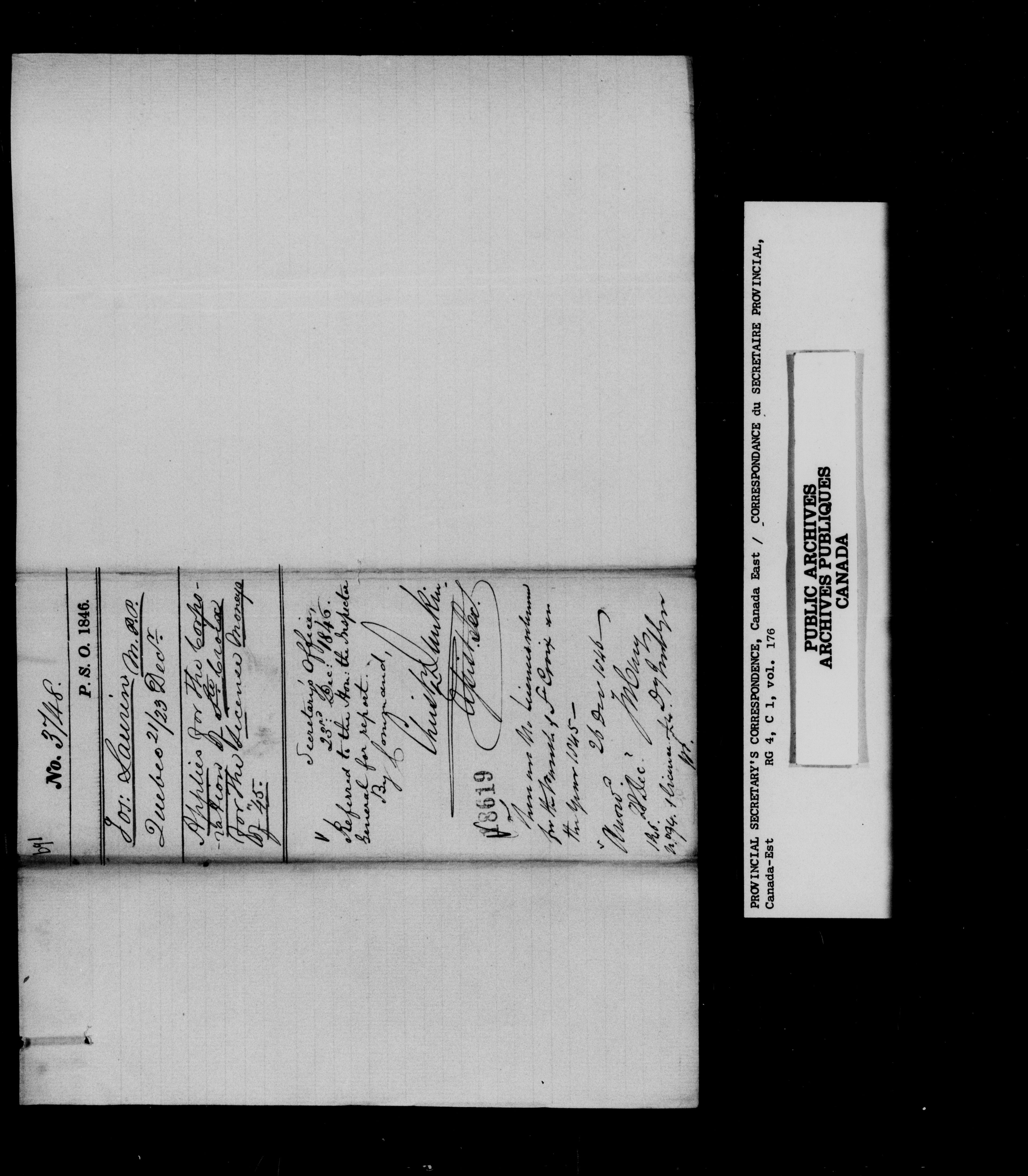 RG 4 C1, Provincial Secretary, Correspondence, Canada East - 13549