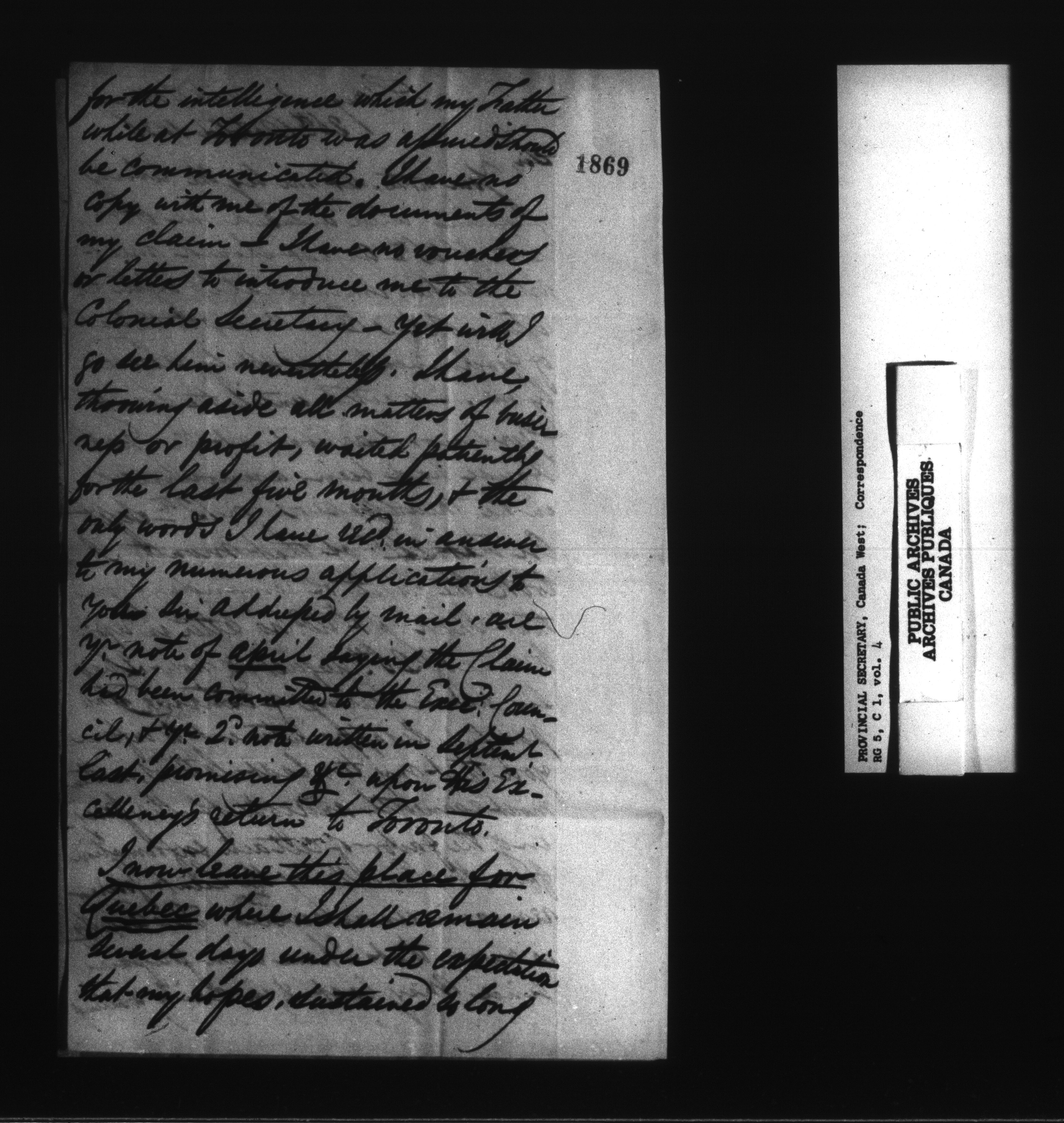 RG 5 C1, Provincial Secretary, Correspondence, Canada West - 13550