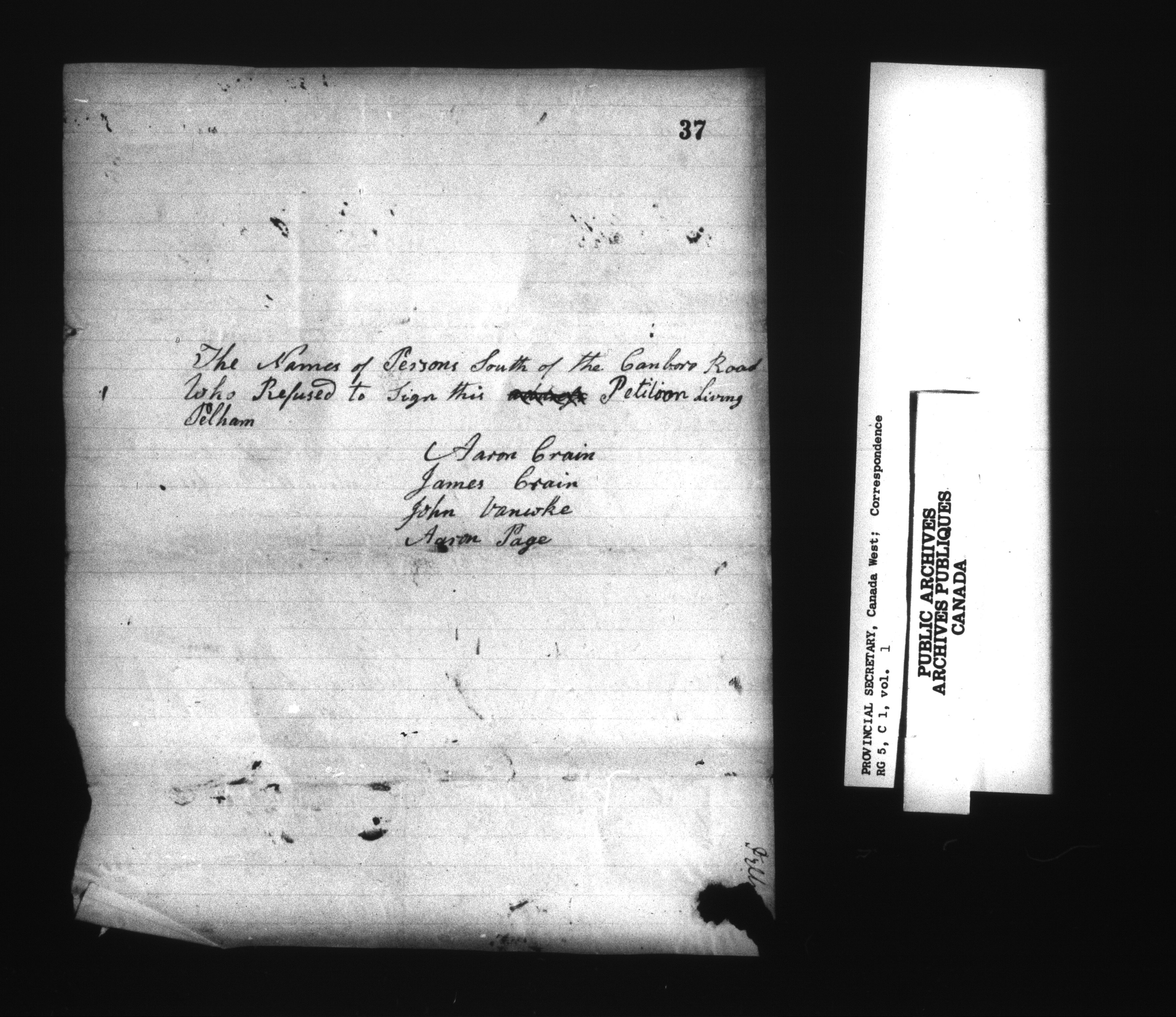RG 5 C1, Provincial Secretary, Correspondence, Canada West - 13550