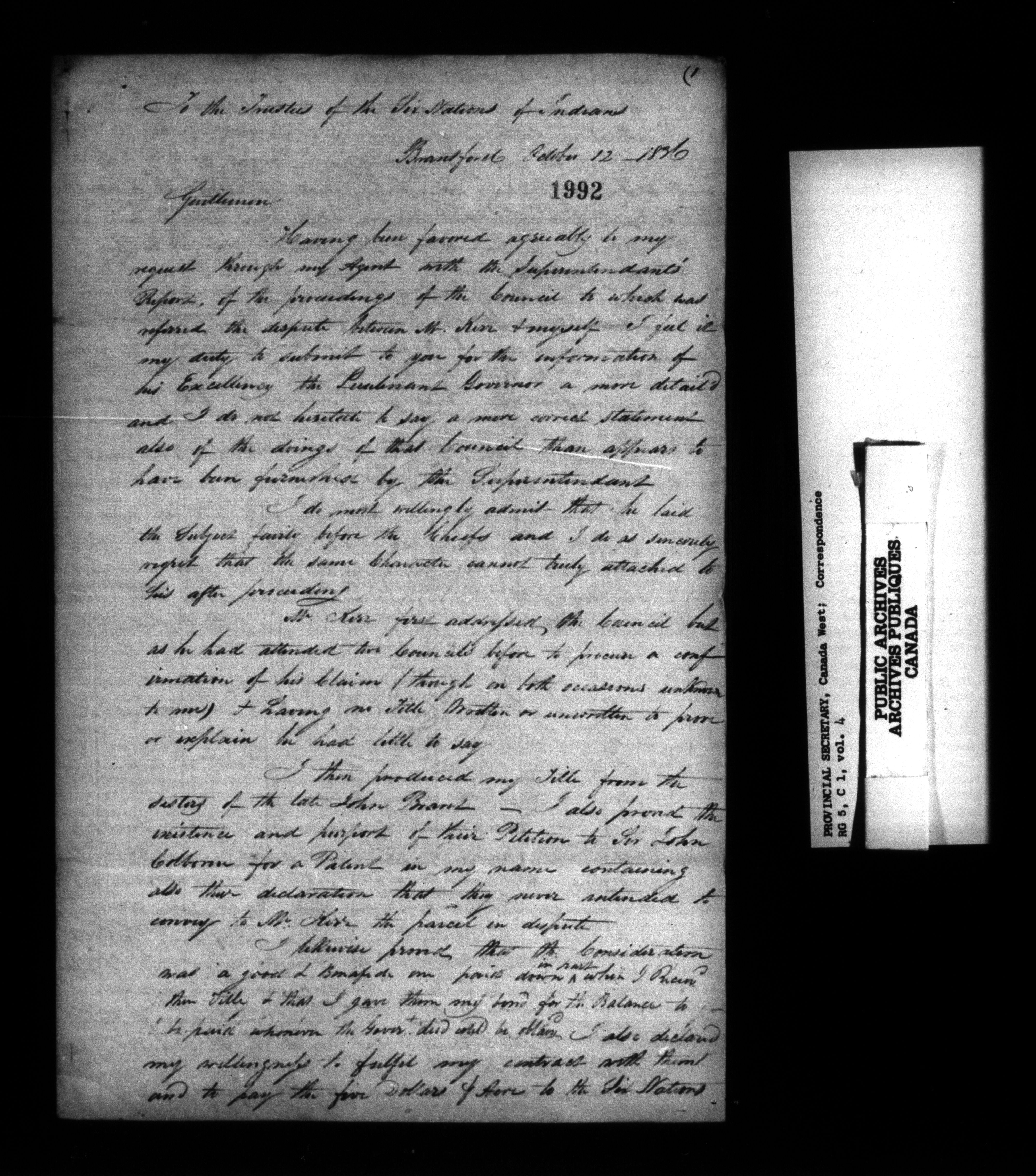 RG 5 C1, Provincial Secretary, Correspondence, Canada West - 13551