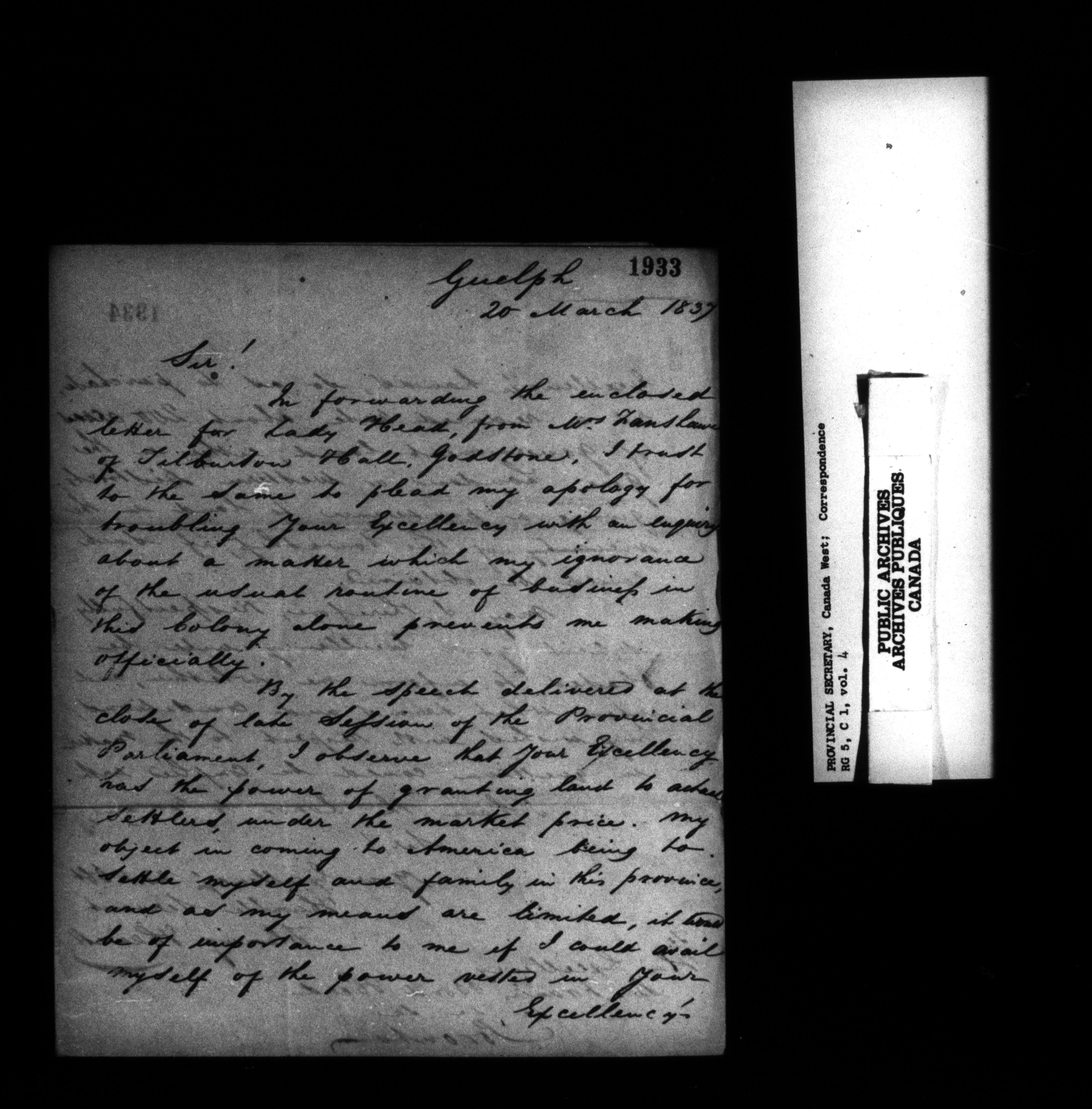 Canada West : Provincial Secretary, numbered correspondence files, 1844 to 1867 : C-13551