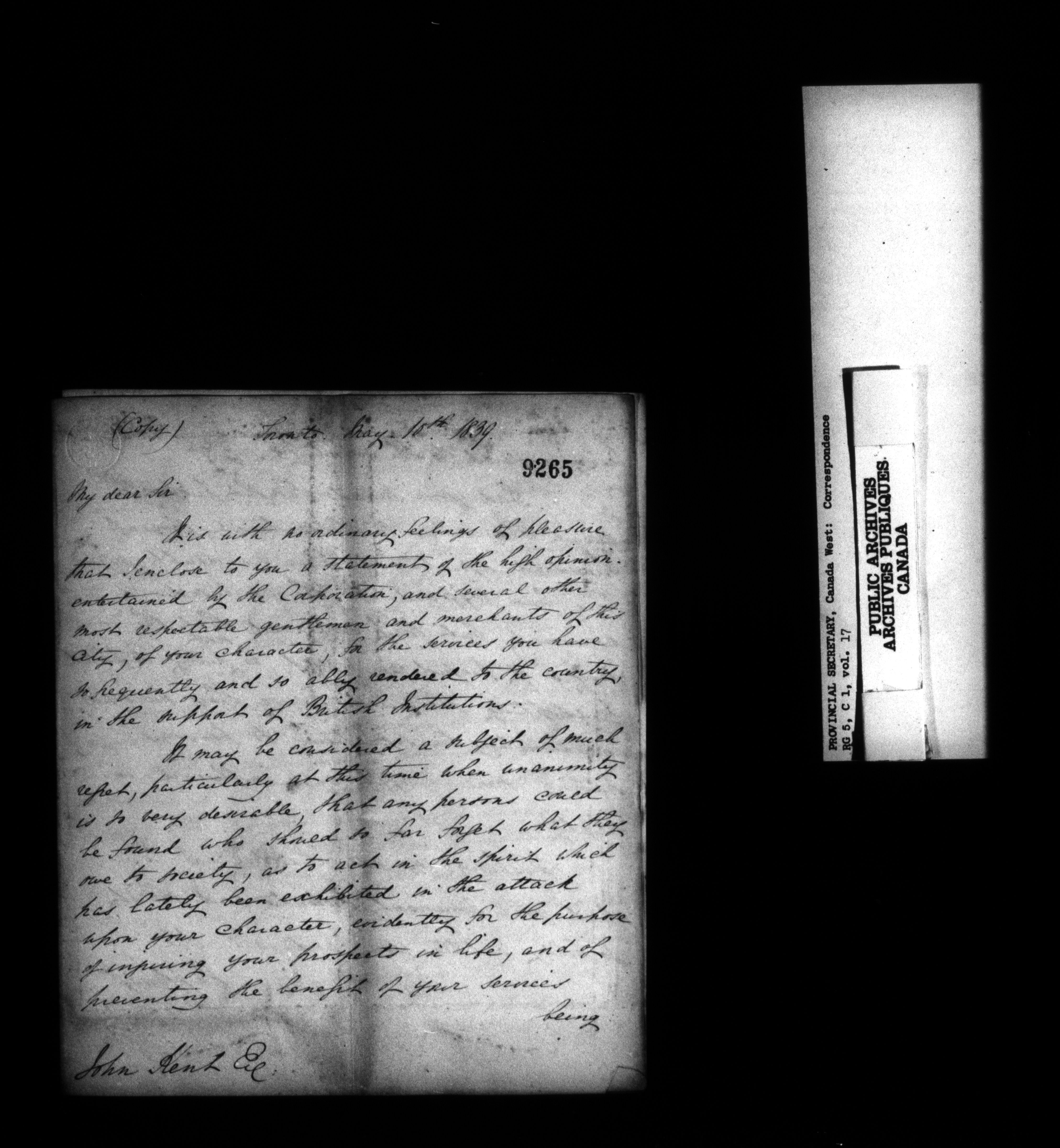 Canada West : Provincial Secretary, numbered correspondence files, 1844 to 1867 : C-13554