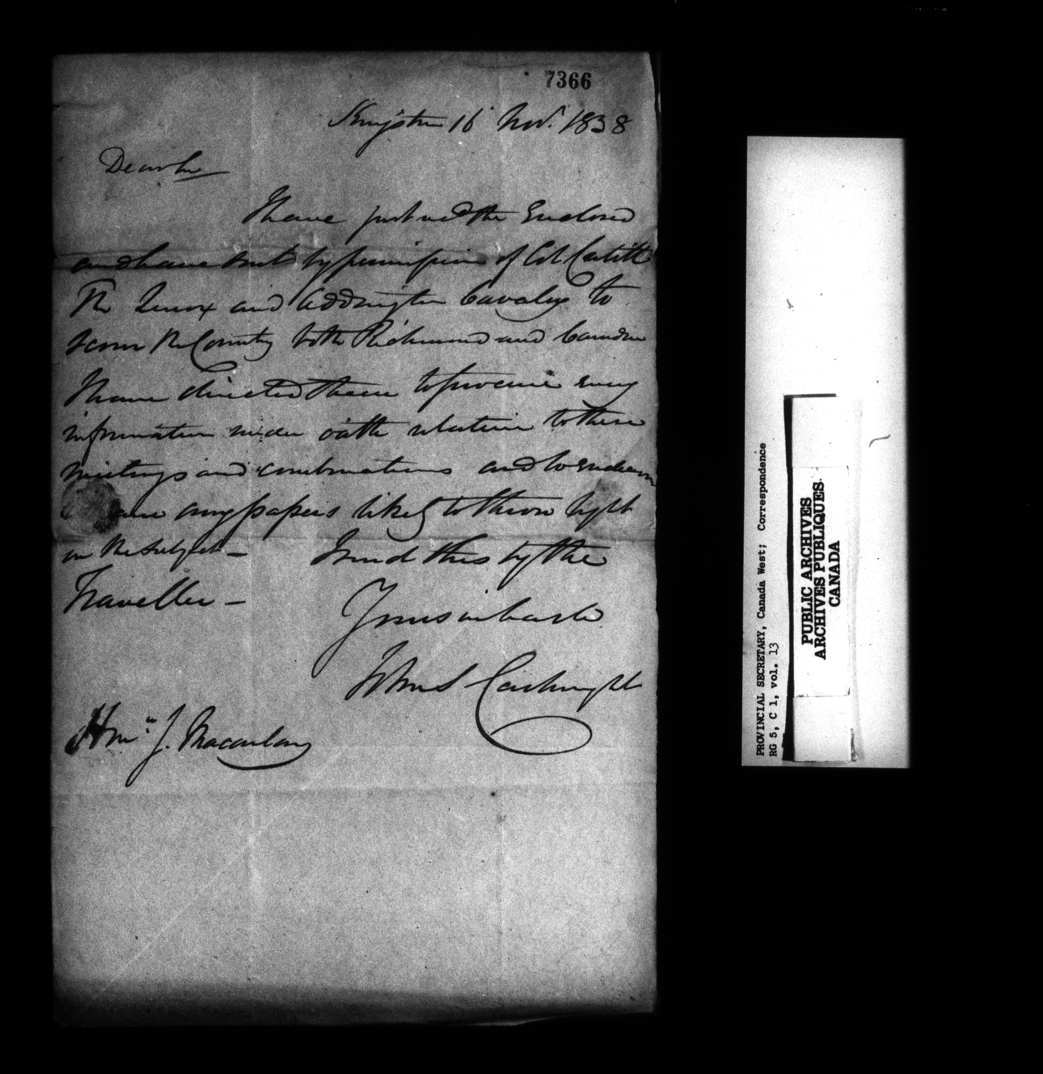 Canada West : Provincial Secretary, numbered correspondence files, 1844 to 1867 : C-13554