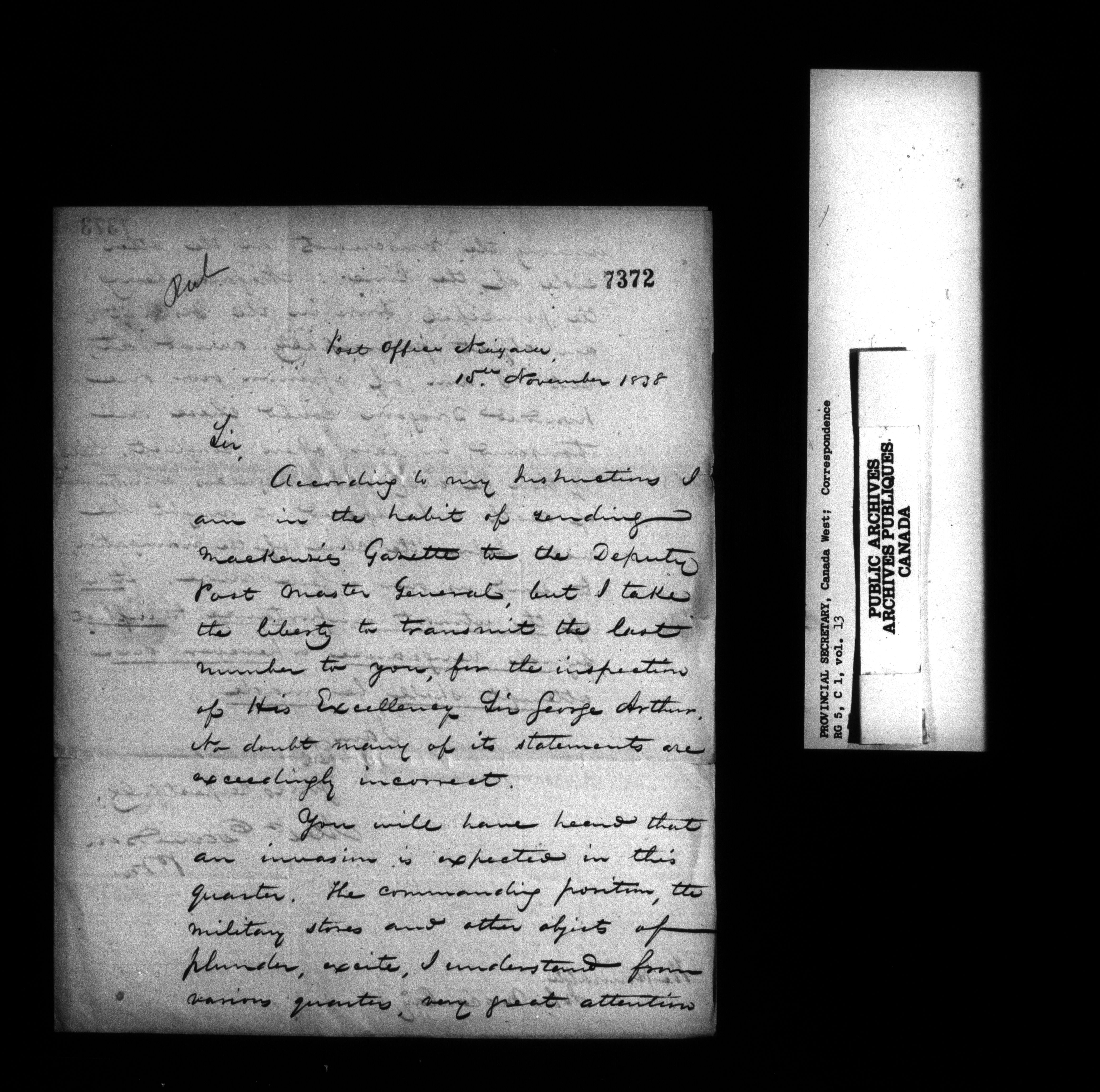 Canada West : Provincial Secretary, numbered correspondence files, 1844 to 1867 - 13554