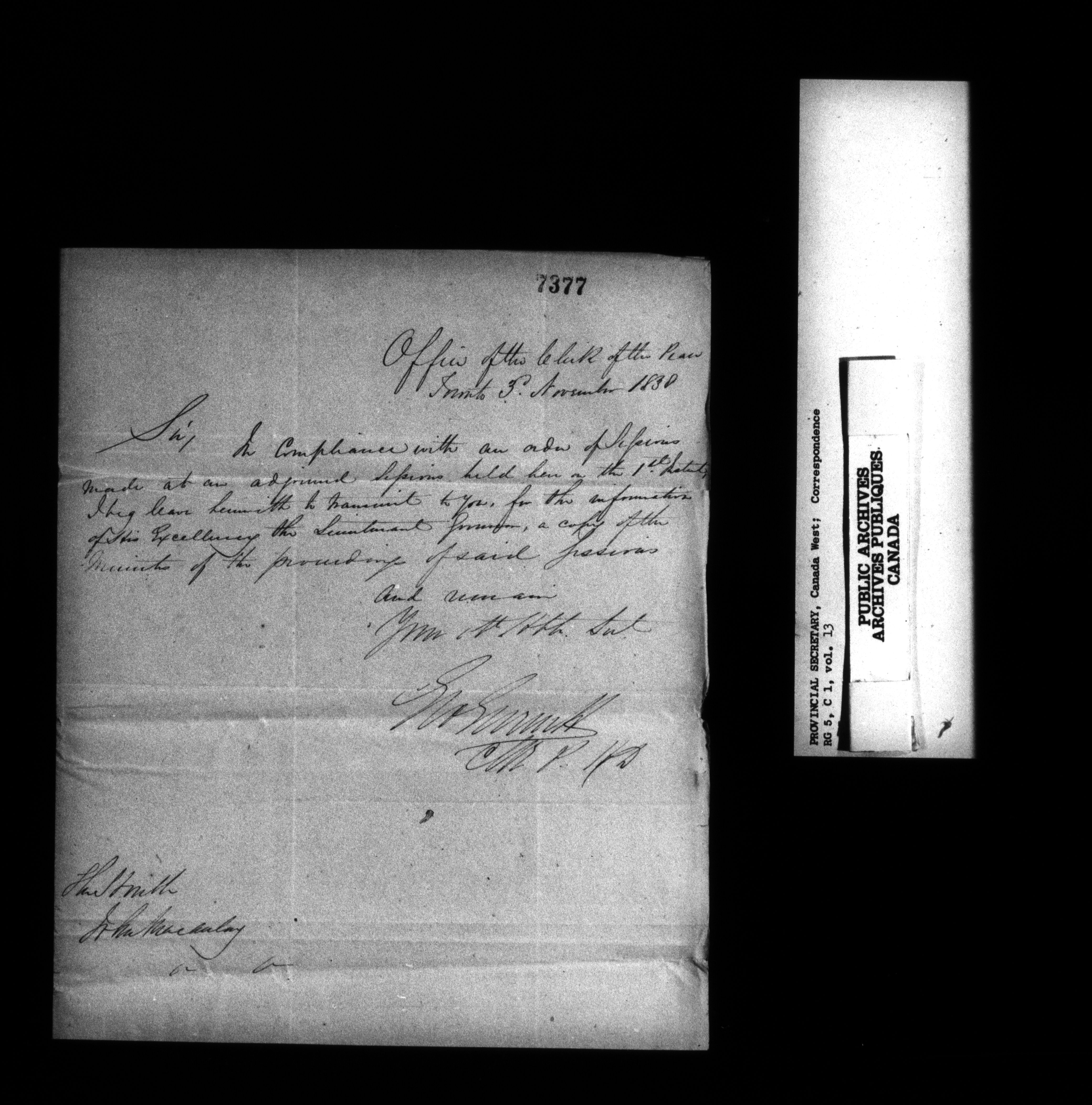 Canada West : Provincial Secretary, numbered correspondence files, 1844 to 1867 - 13554