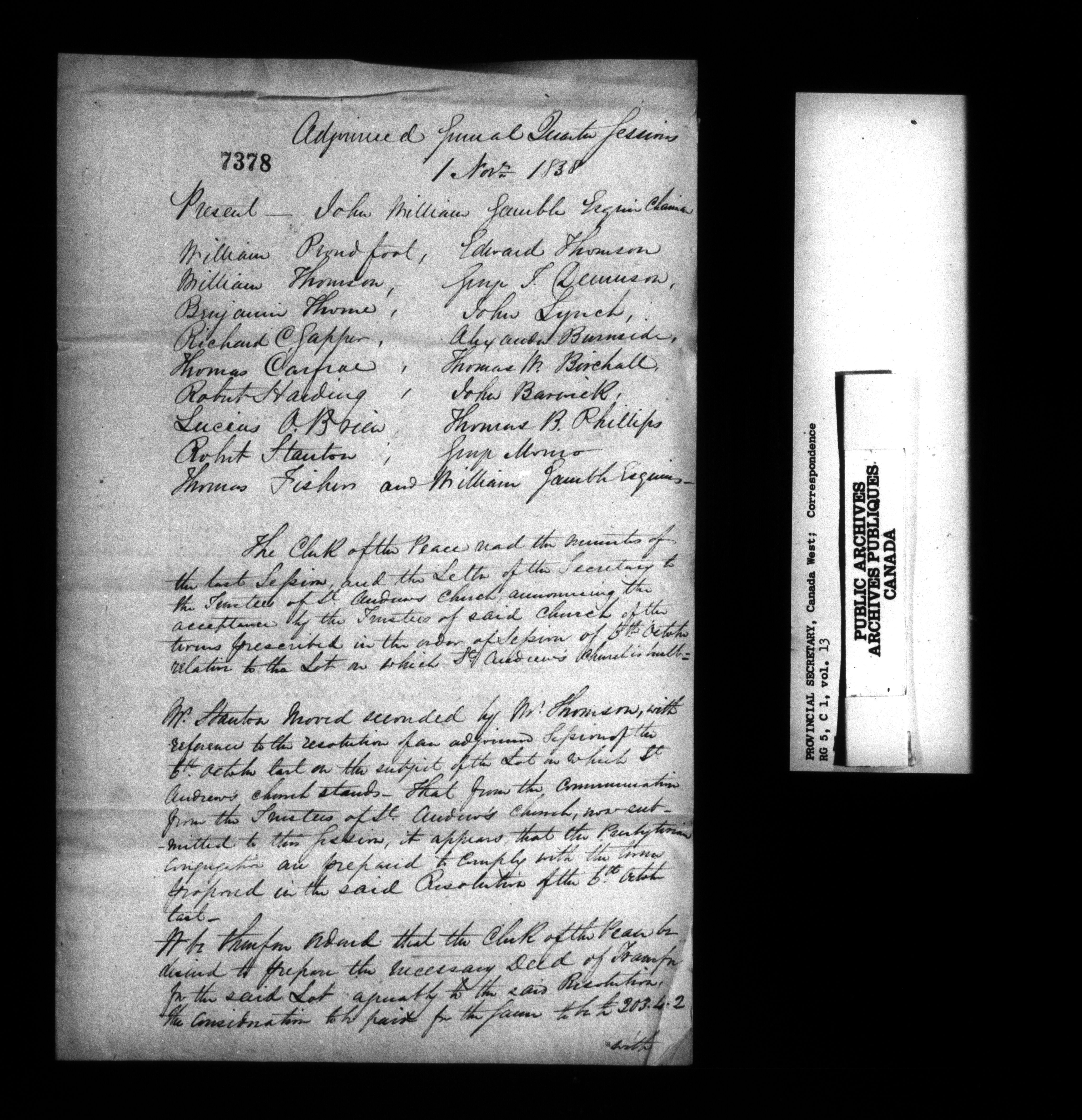 Canada West : Provincial Secretary, numbered correspondence files, 1844 to 1867 : C-13554