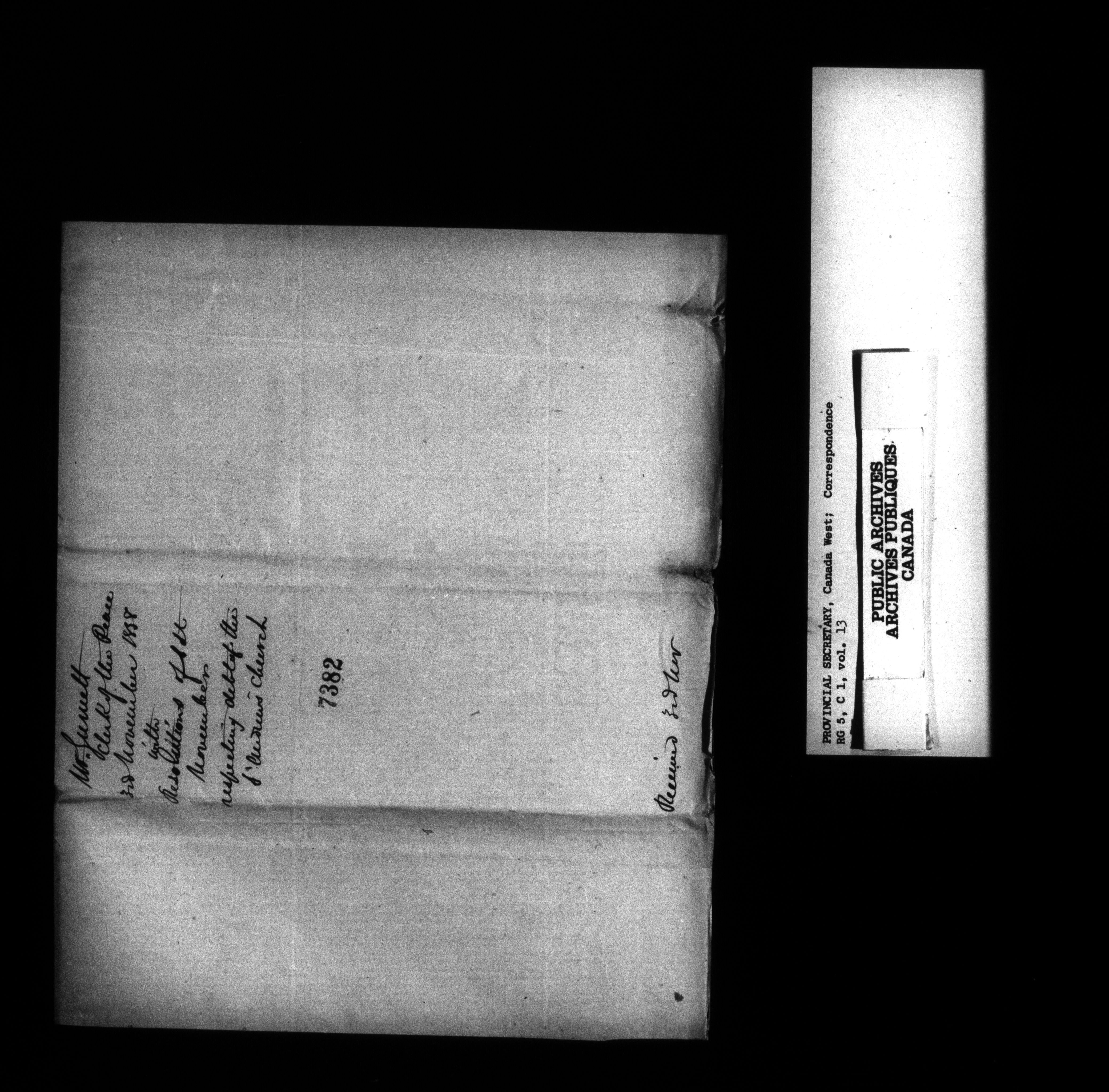 Canada West : Provincial Secretary, numbered correspondence files, 1844 to 1867 : C-13554