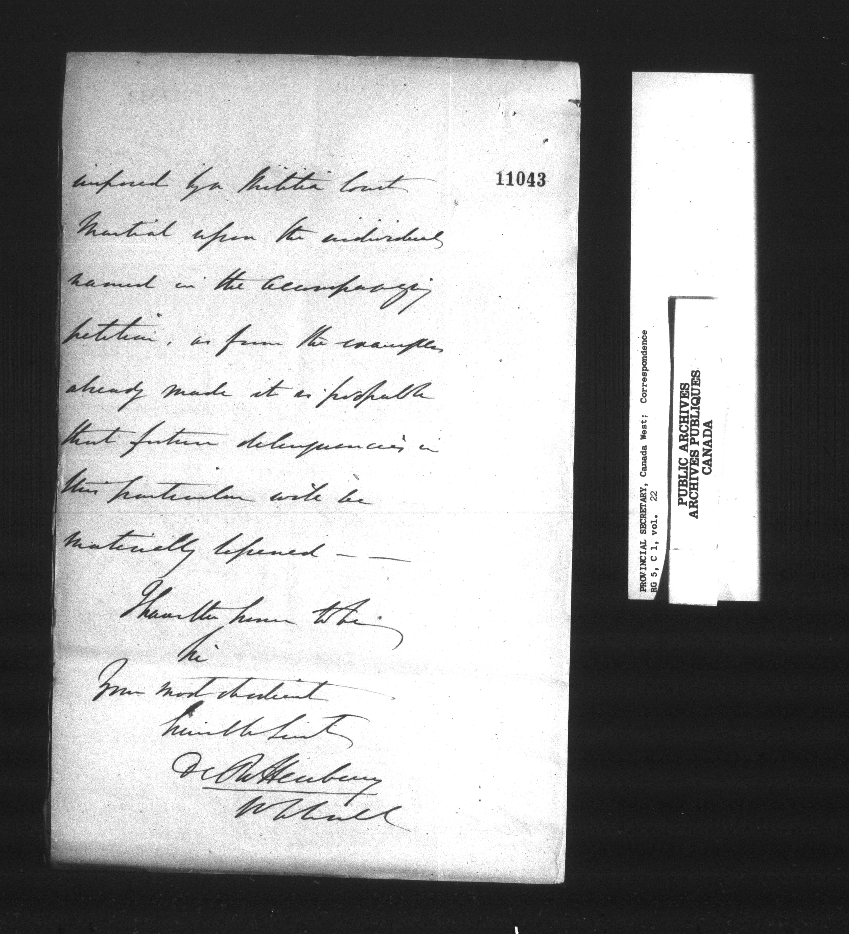 RG 5 C1, Provincial Secretary, Correspondence, Canada West - 13555