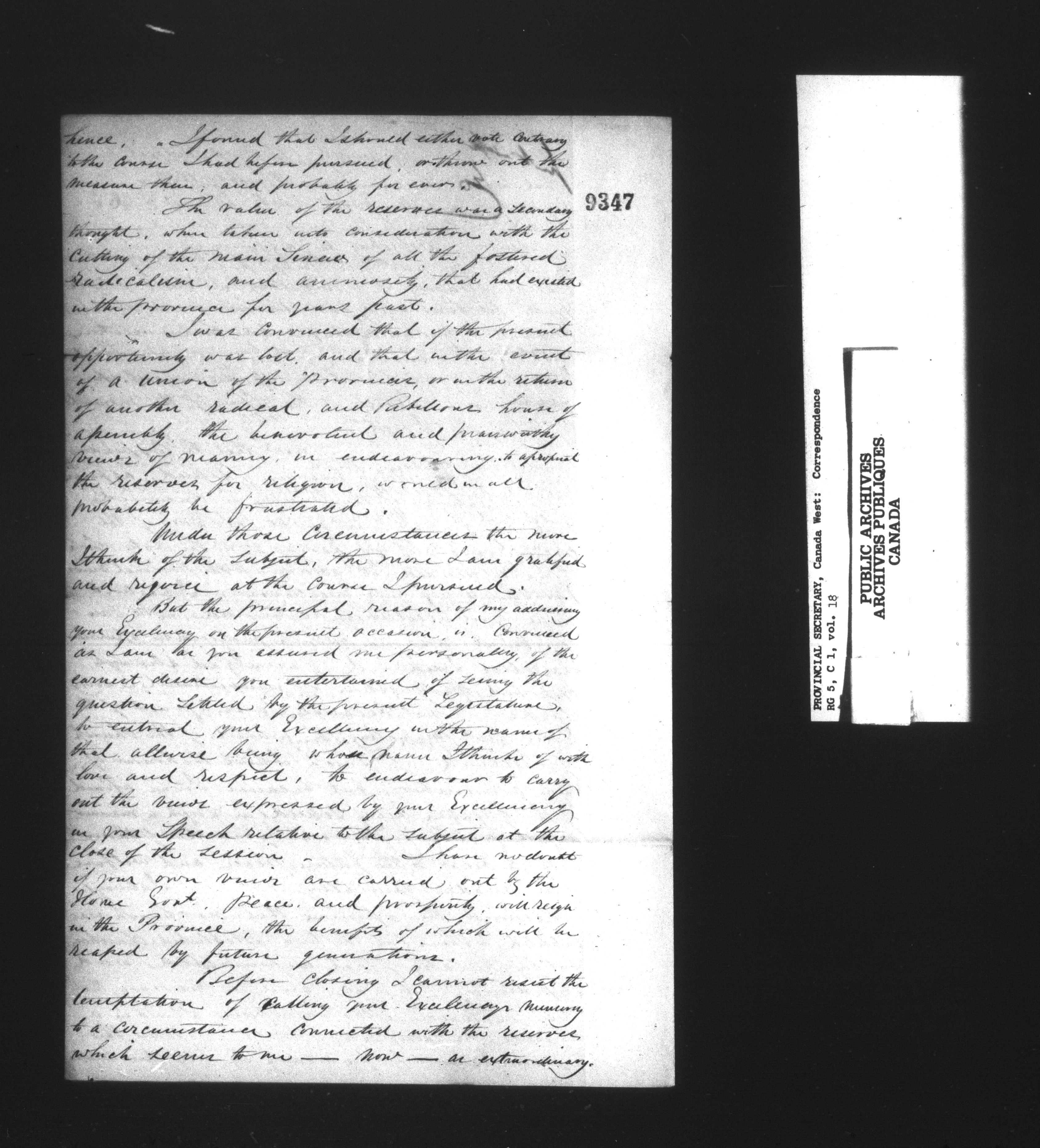 Canada West : Provincial Secretary, numbered correspondence files, 1844 to 1867 : C-13555