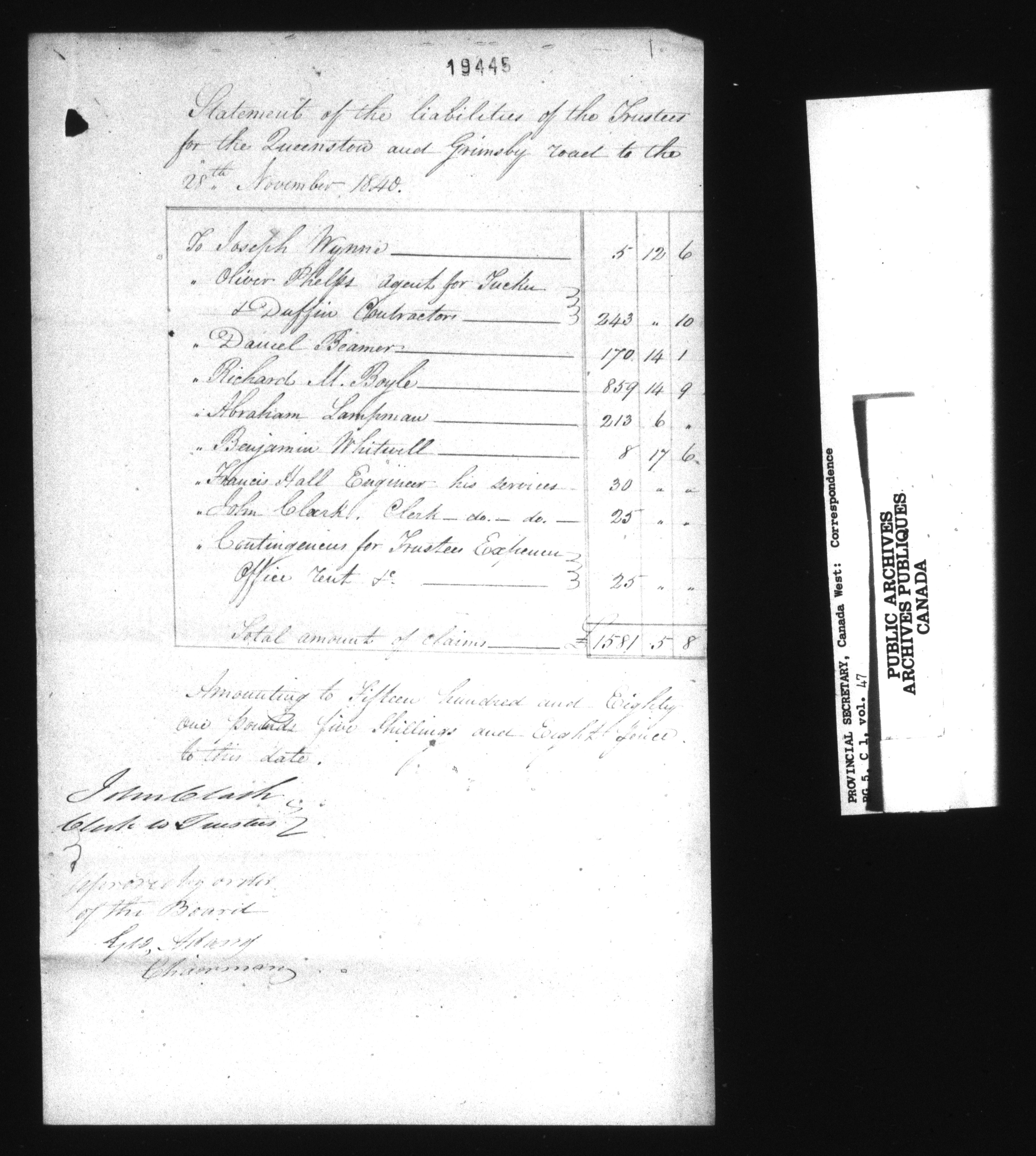 RG 5 C1, Provincial Secretary, Correspondence, Canada West - 13560