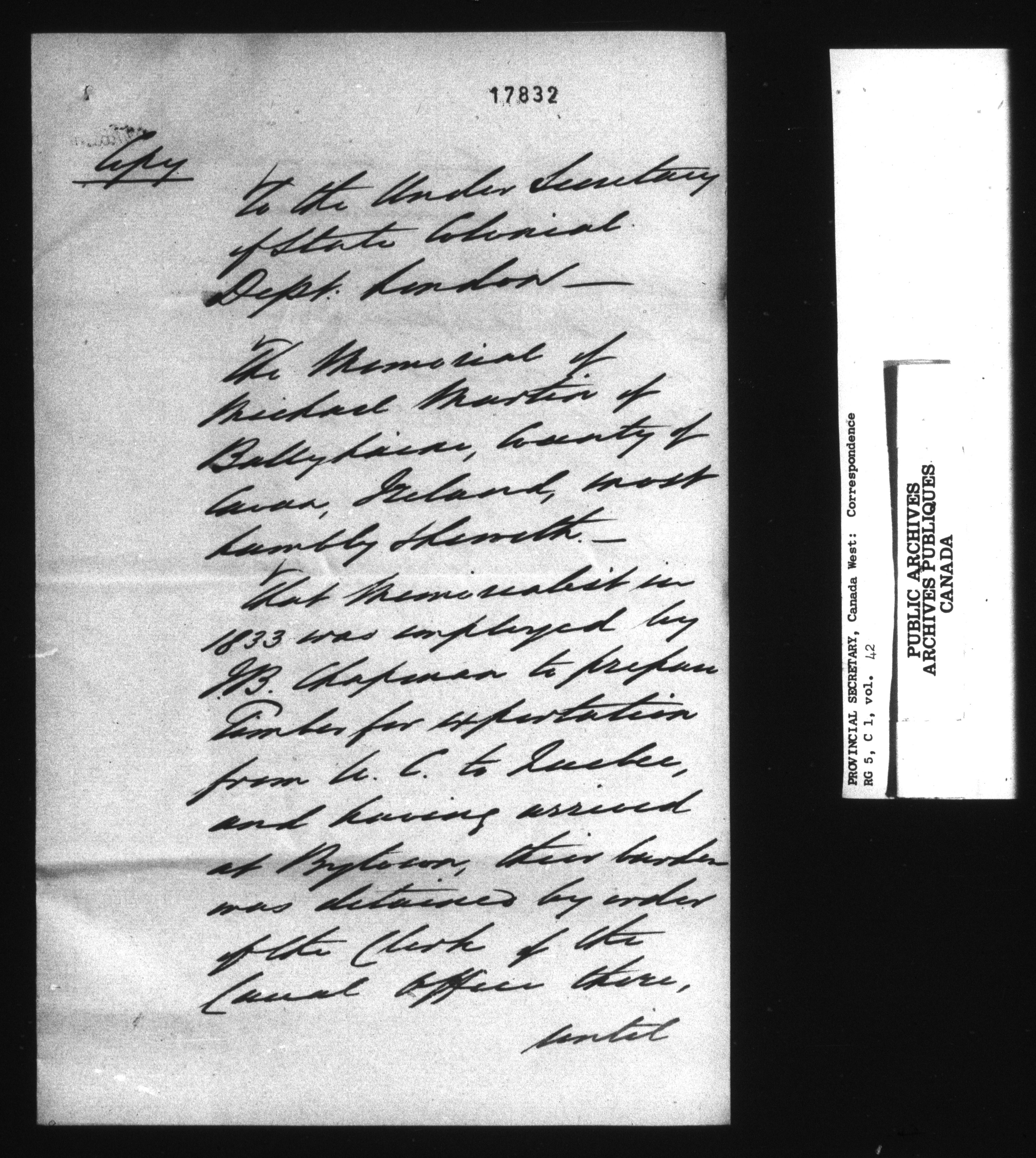 RG 5 C1, Provincial Secretary, Correspondence, Canada West - 13560