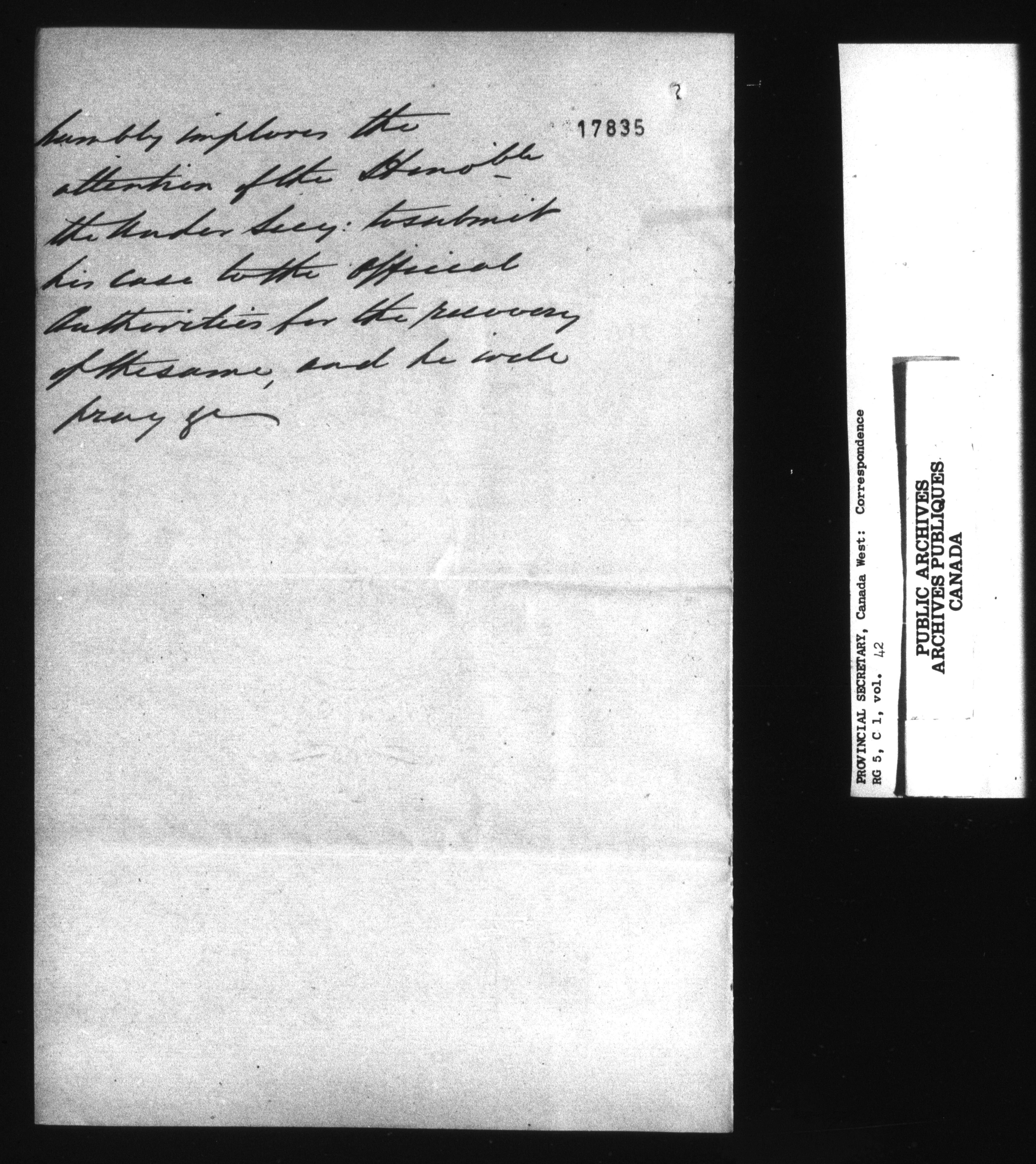 RG 5 C1, Provincial Secretary, Correspondence, Canada West - 13560