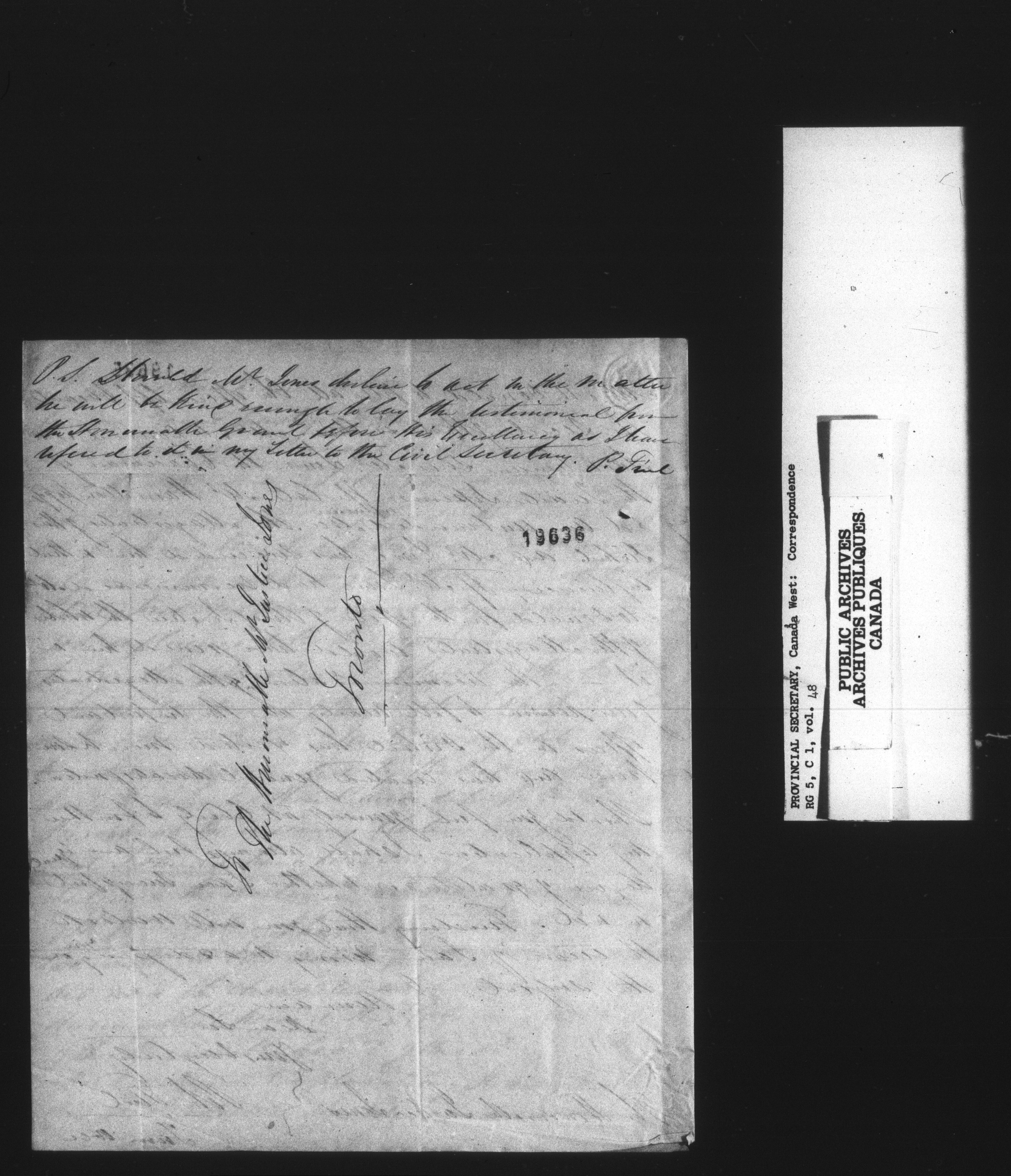 RG 5 C1, Provincial Secretary, Correspondence, Canada West - 13561