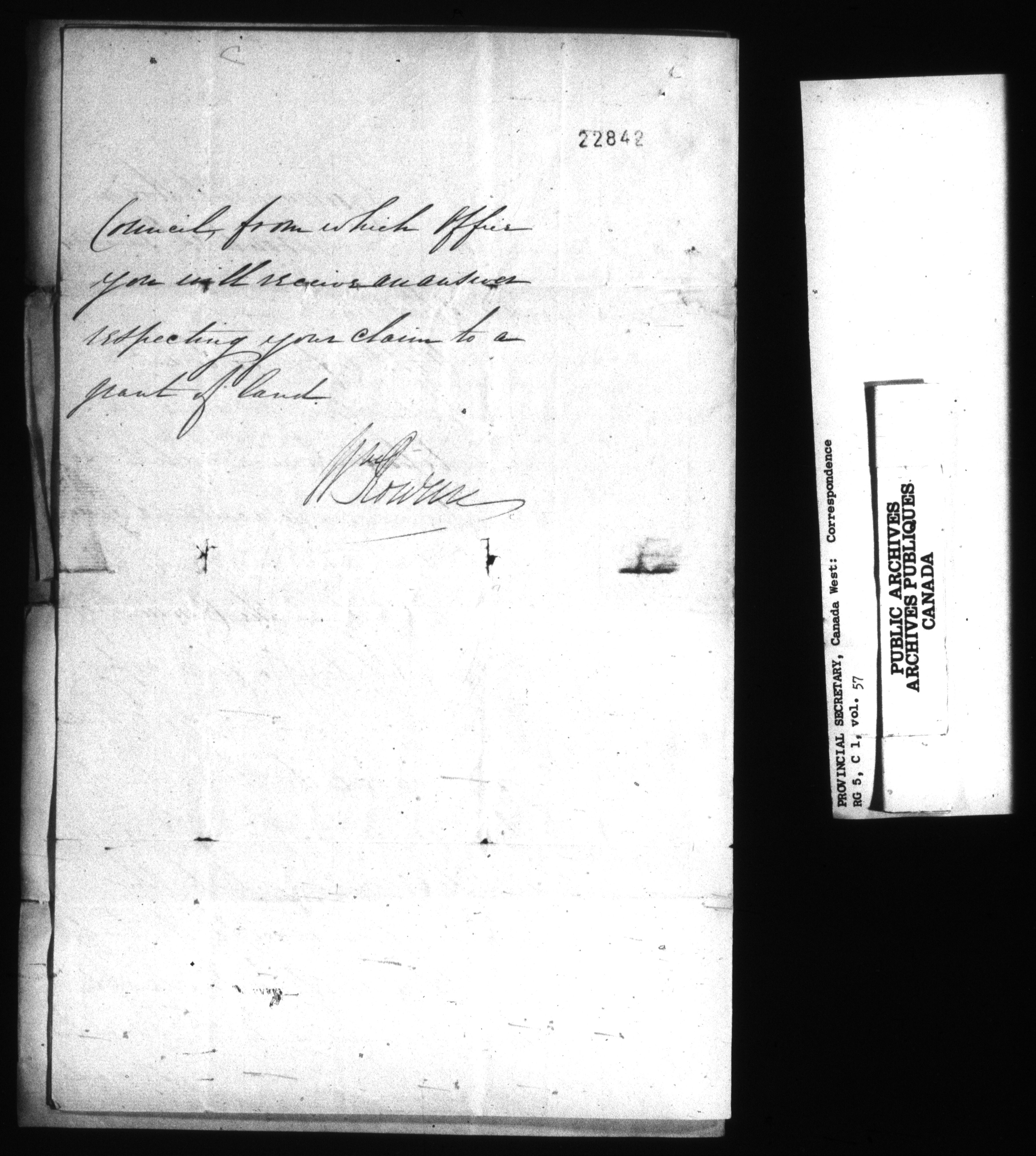 RG 5 C1, Provincial Secretary, Correspondence, Canada West - 13562