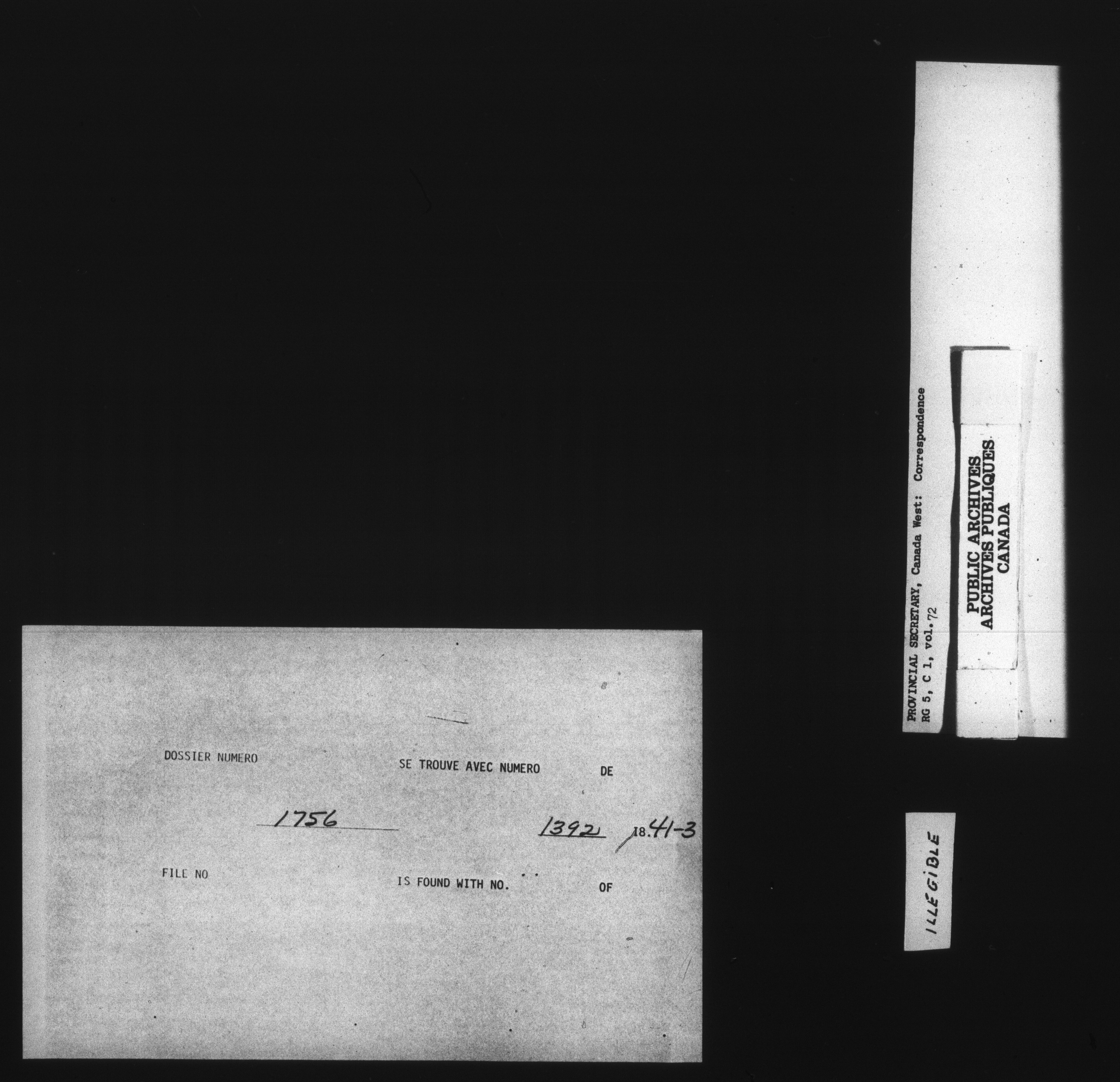 Canada West : Provincial Secretary, numbered correspondence files, 1844 to 1867 : C-13565