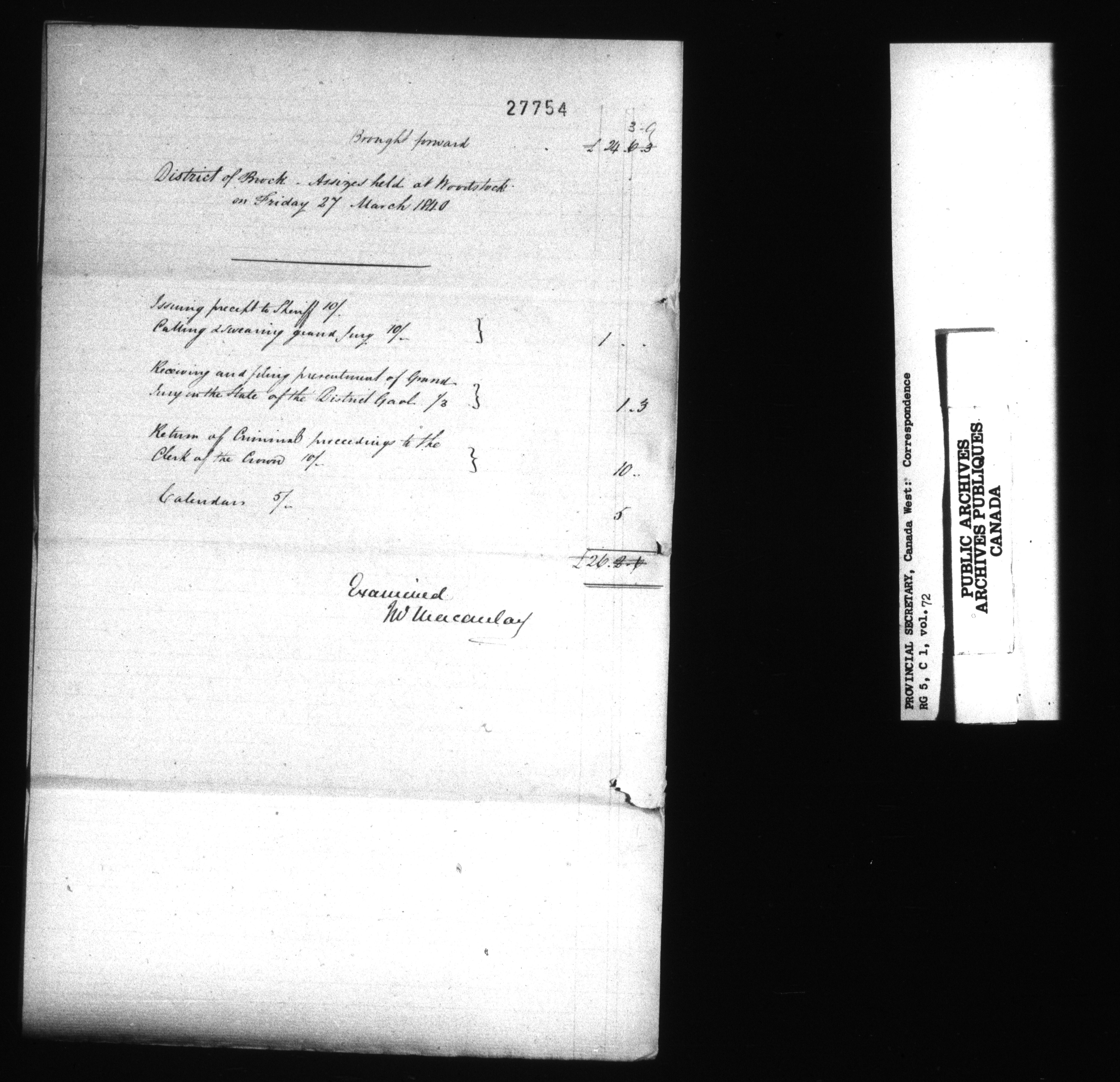 RG 5 C1, Provincial Secretary, Correspondence, Canada West - 13566