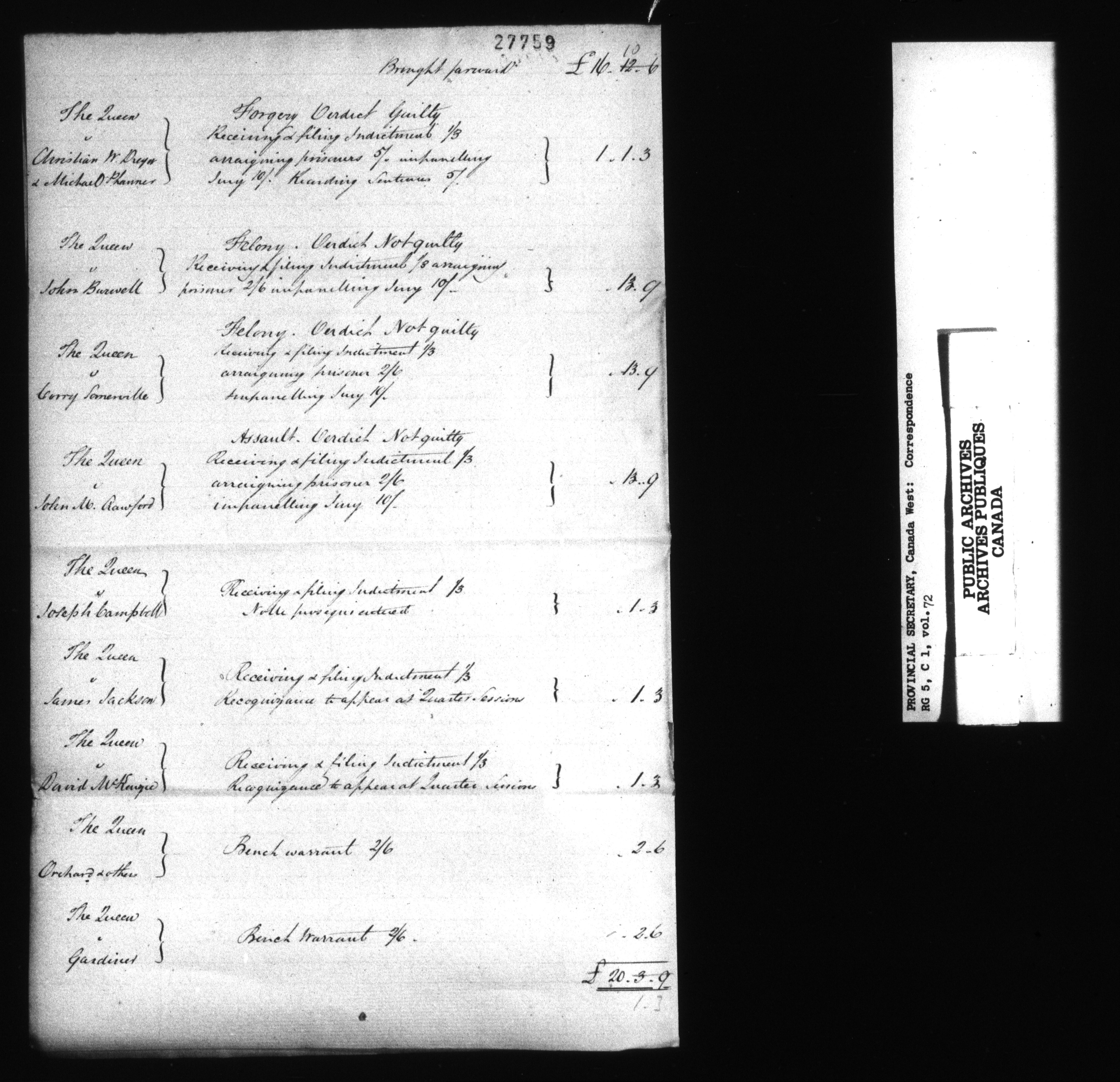 RG 5 C1, Provincial Secretary, Correspondence, Canada West - 13566